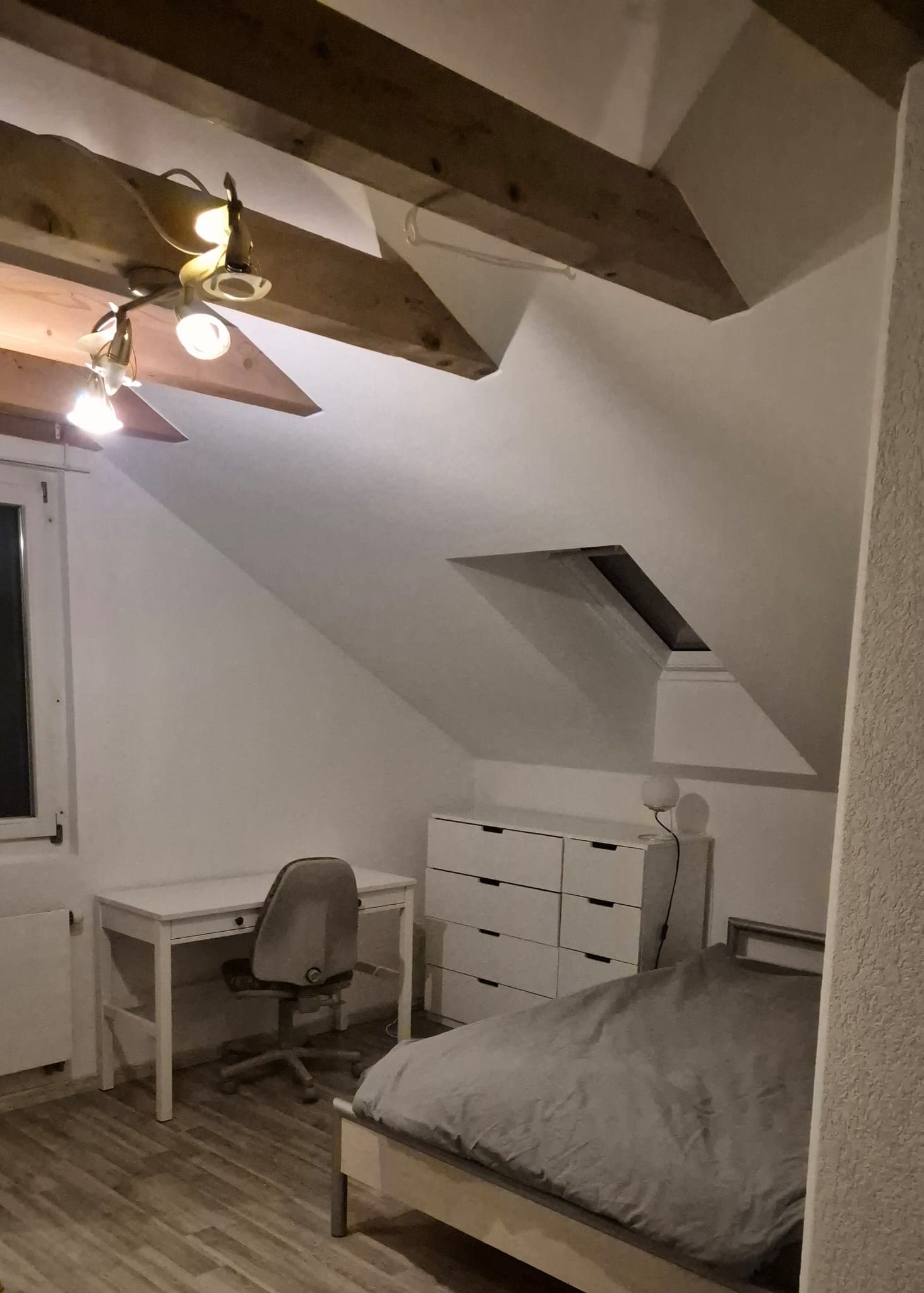 Ab NovemberVerfügbar ab 11.11.20257 Tage onlineonline.since 7 TageDie grosse Wohnung ist als ruhige Zweier-WG gestaltet und erstreckt sich über zwei Stockwerke.Wohnung hat einen Balkon oder eine TerrasseZimmer ist voll möbliert, eventuell können noch eigene Möbel mitgebracht werdenWaschmaschine in der WohnungZimmer verfügt über ein eigenes Bad, das du mit niemandem teilen musstGeteiltes WifiGeschlecht egal