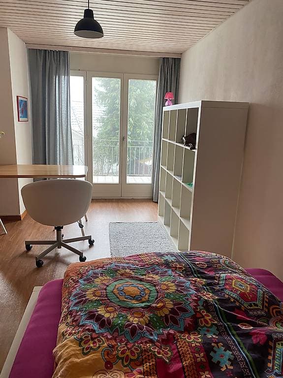 Das Zimmer mit Balkon befindet sich in einem 7 1/2 Zimmer-Haus in Berg TG Es ist möbiliert.