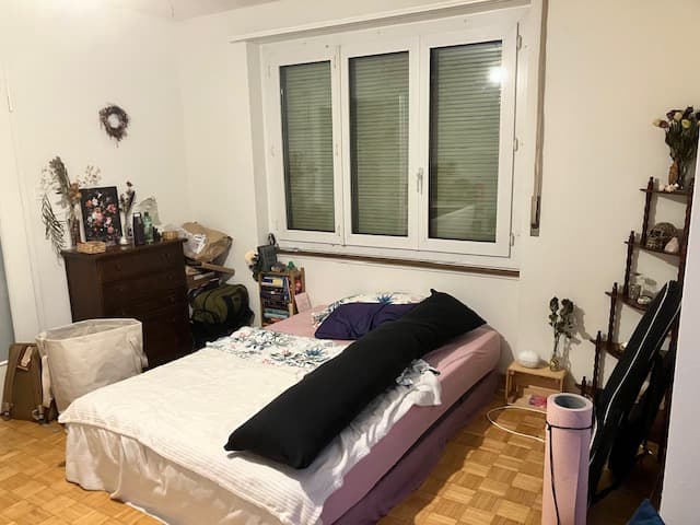 2 Tage onlineRuhiges Zimmer mit Blick zum Waldrand und grossem Fenster. Ca. 16m2 gross. Verfügbarkeit ab 1.03.2026 oder nach Vereinbarung.