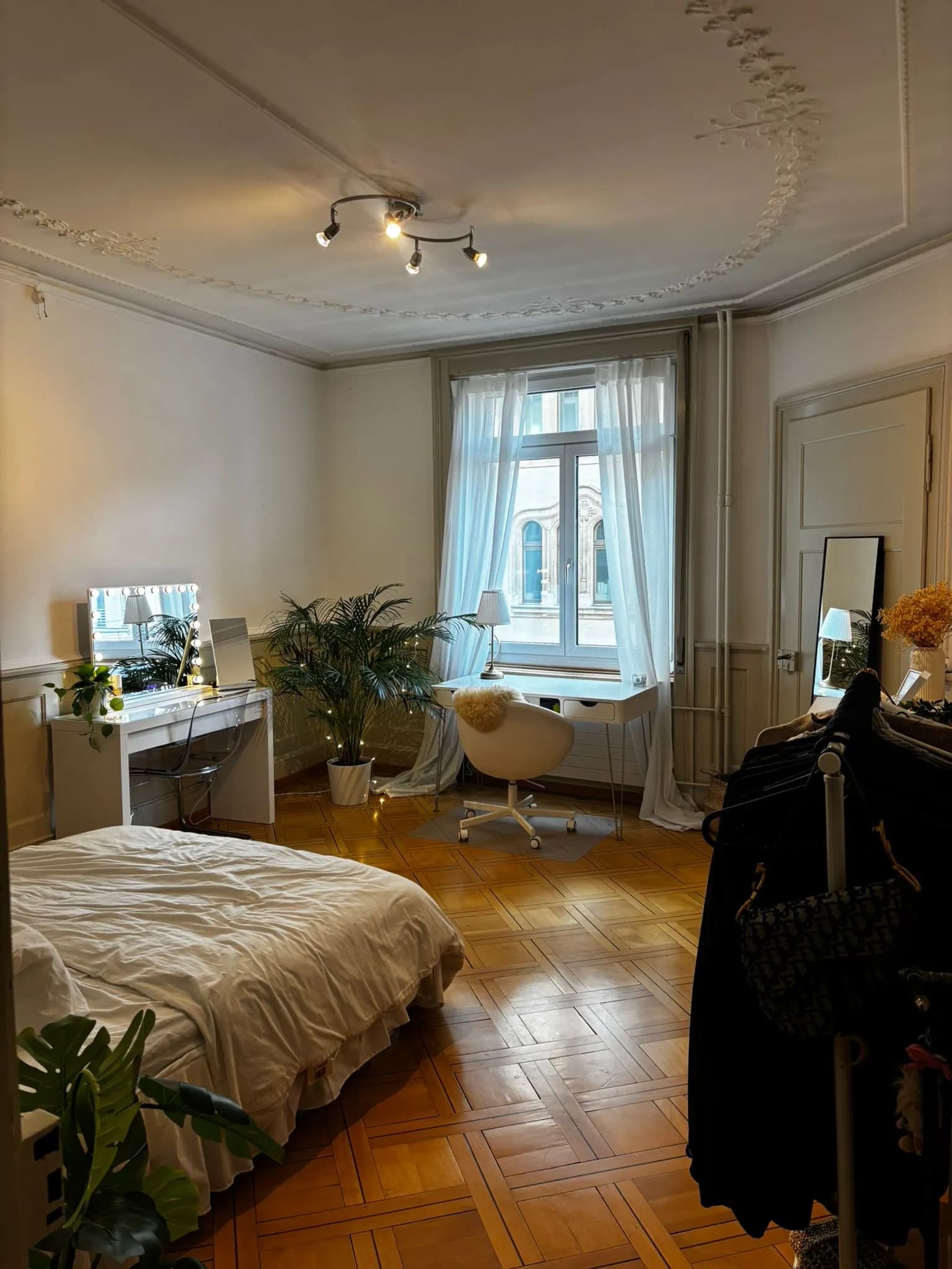 Ab MärzVerfügbar ab 01.03.202621 Stunden onlineonline.since 21 StundenDas Zimmer ist einzigartig gross (um die 35m2) mit Parket, viel Licht und sogar einem kleinen Erker (perfekt zum Lesen!).Wohnung hat einen Balkon oder eine TerrasseGeteiltes WifiZimmer ist voll möbliert, eventuell können noch eigene Möbel mitgebracht werdenGeschlecht egal
