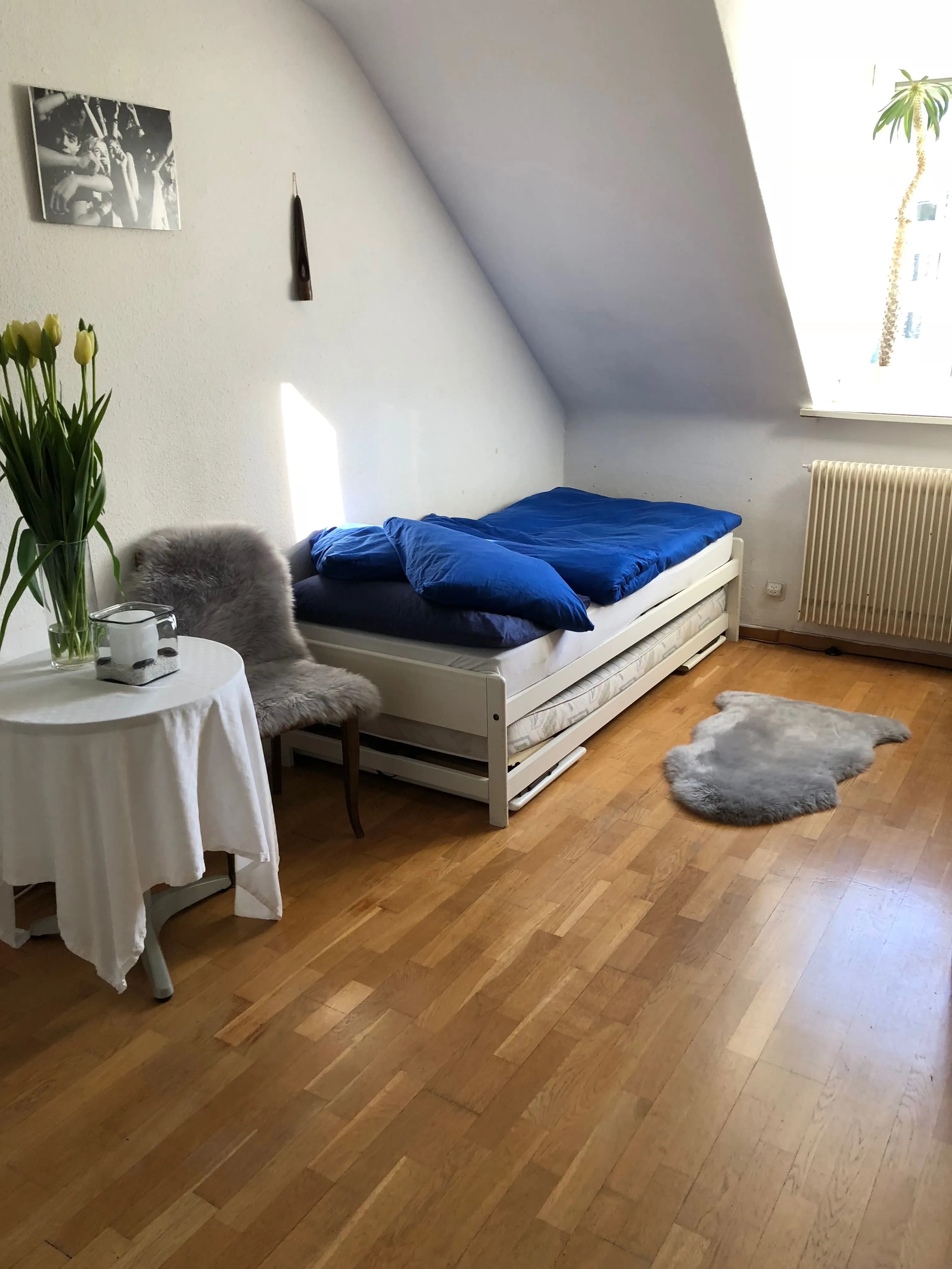 Ab DezemberVerfügbar ab 23.12.20251 Tag onlineonline.since 1 TagHey there, I’m away for my thesis in Munich and subletting my beautiful, dear room in Zurich for the moth of January.Wohnung hat einen Balkon oder eine TerrasseZimmer ist voll möbliert, eventuell können noch eigene Möbel mitgebracht werdenWaschmaschine in der WohnungGeteiltes WifiGarten zur MitbenutzungGeschlecht egalEs gibt ein aktives WG-Leben (keine Zweck-WG)