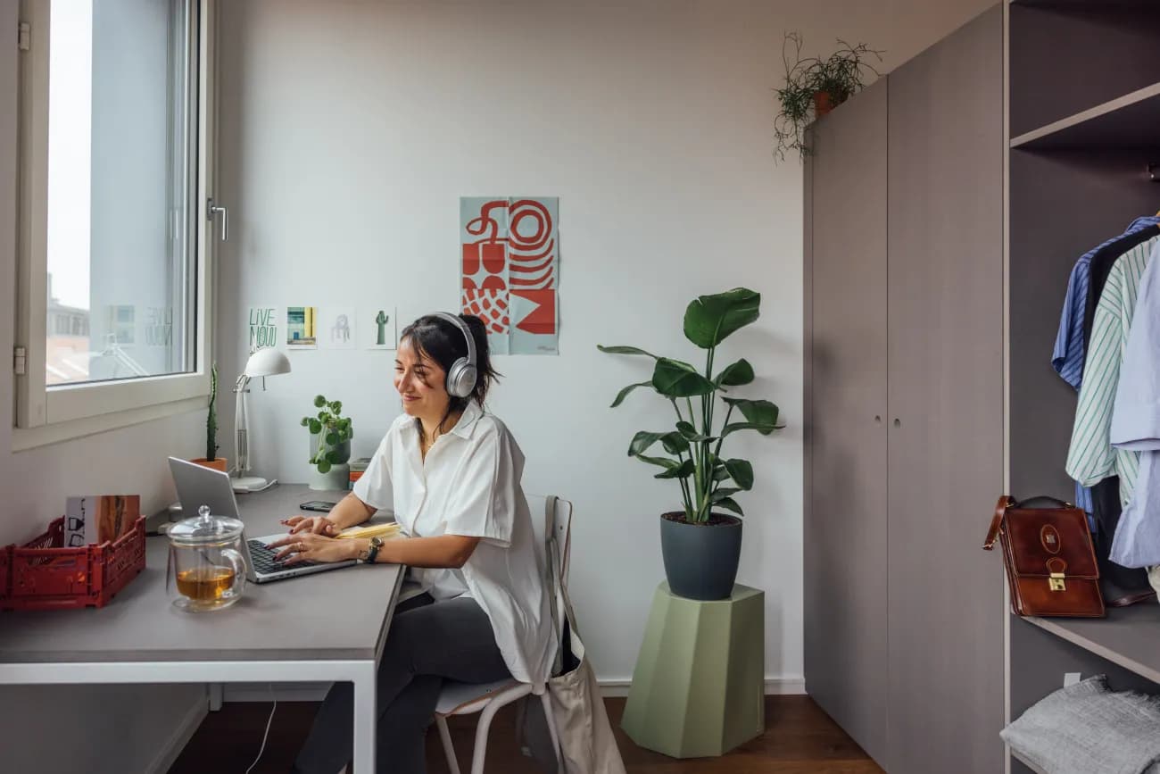 Ab April3 Monate onlineZu deiner privaten Suite (ab 15m²) mit eigenem Badezimmer gehört eine vollausgestattete Gemeinschaftsküche (ca 40m²).