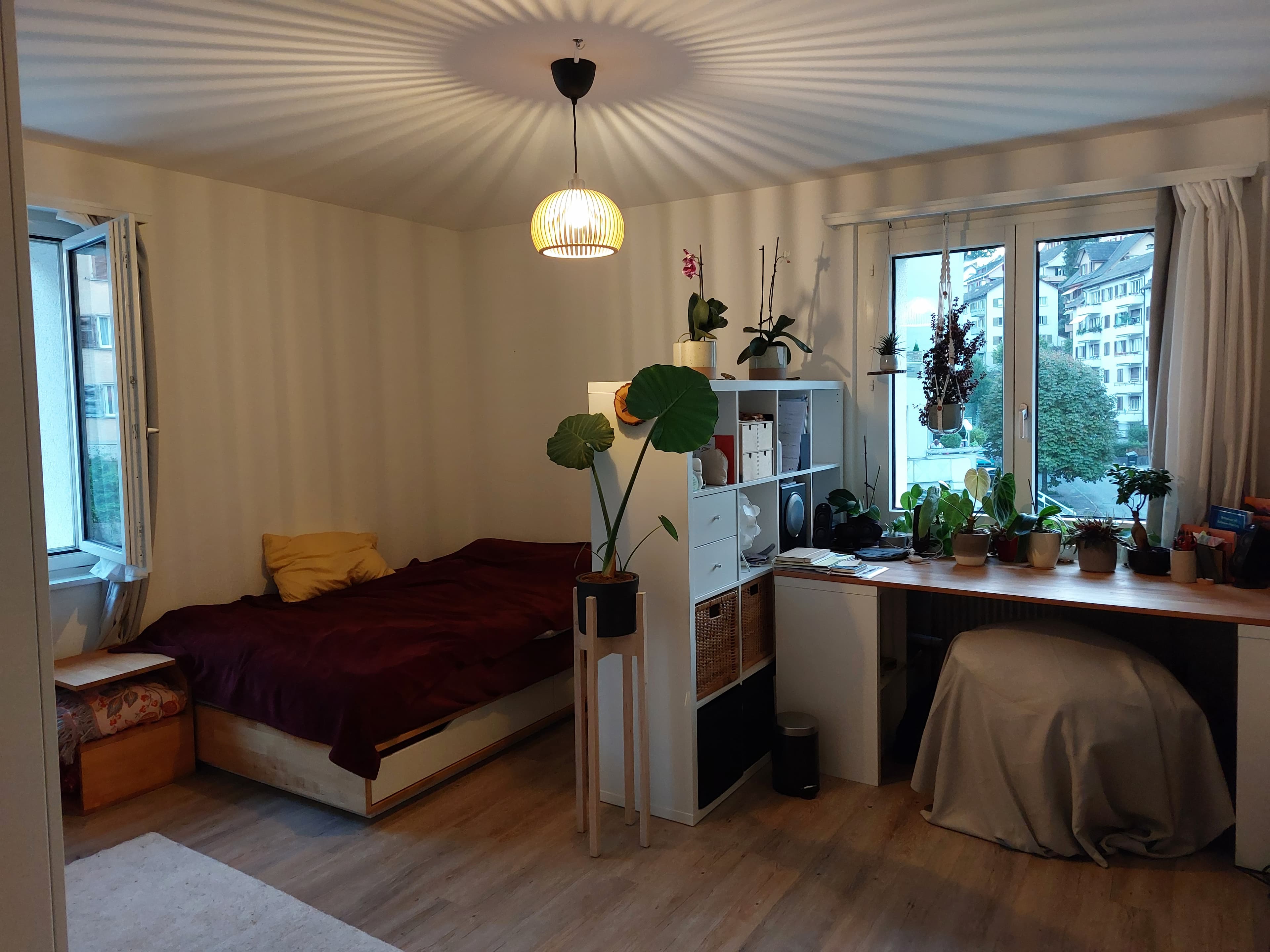 Ab NovemberVerfügbar ab 01.11.20254 Tage onlineonline.since 4 TageEs ist bereits voll ausgestattet mit einem grossen Bett mit Matratze, einem Schreibtisch, und einem Schrank.Geteiltes WifiWaschmaschine in der WohnungWohnung hat einen Balkon oder eine Terrasse872CHF / 14m²