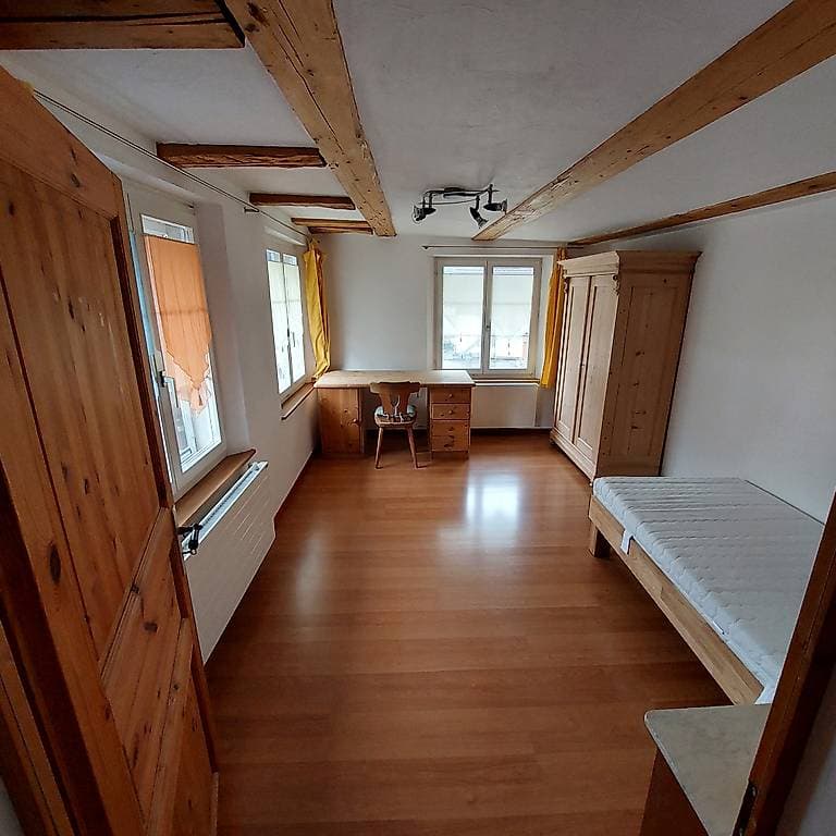 3 Monate onlineonline.since 3 MonateGemeinsame Räume: Bad/Dusche mit Waschmaschine , WC , zweckmäßige Teeküche , Stübli mit Fernseher , 1 Gedeckter Gartensitzplatz.Geteiltes WifiWohnung hat einen Balkon oder eine Terrasse