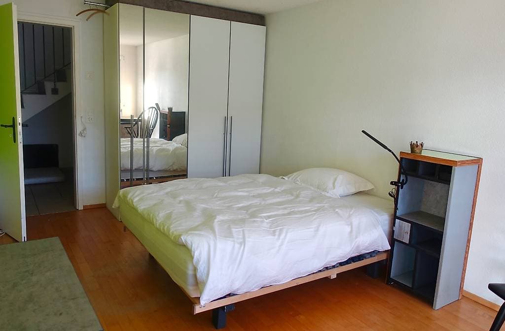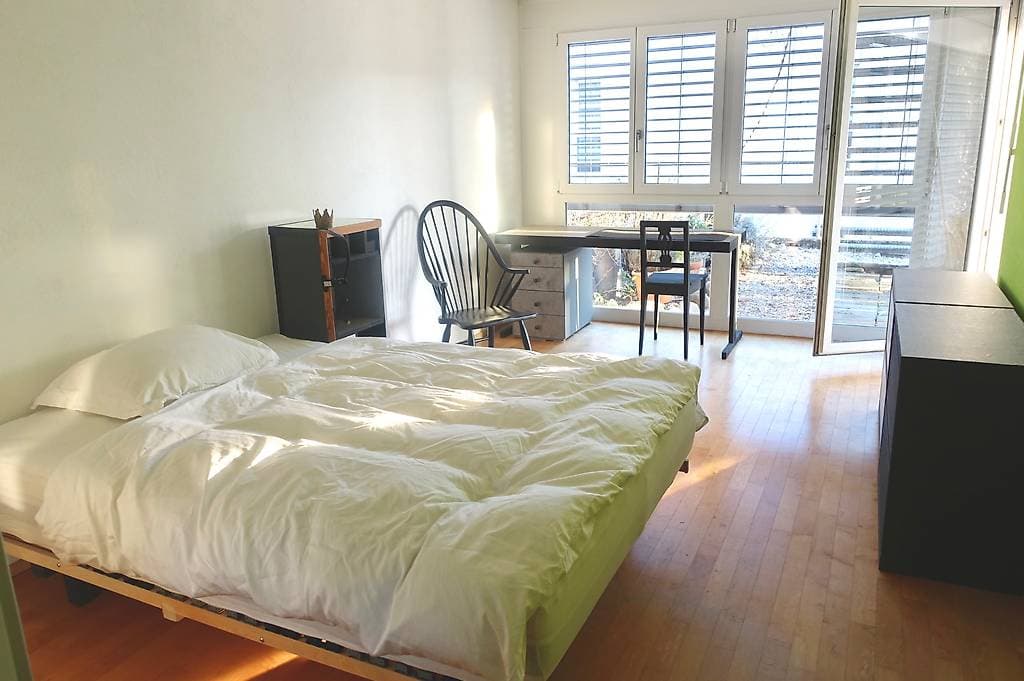 Roommate wanted, preferably cheerful and nature-loving, age and gender don't matter, as long as we get along well. The flat is 190 m² and has two floors. It is very bright and located in a multi-family house with underfloor heating, in a green area and close to the Aare river.