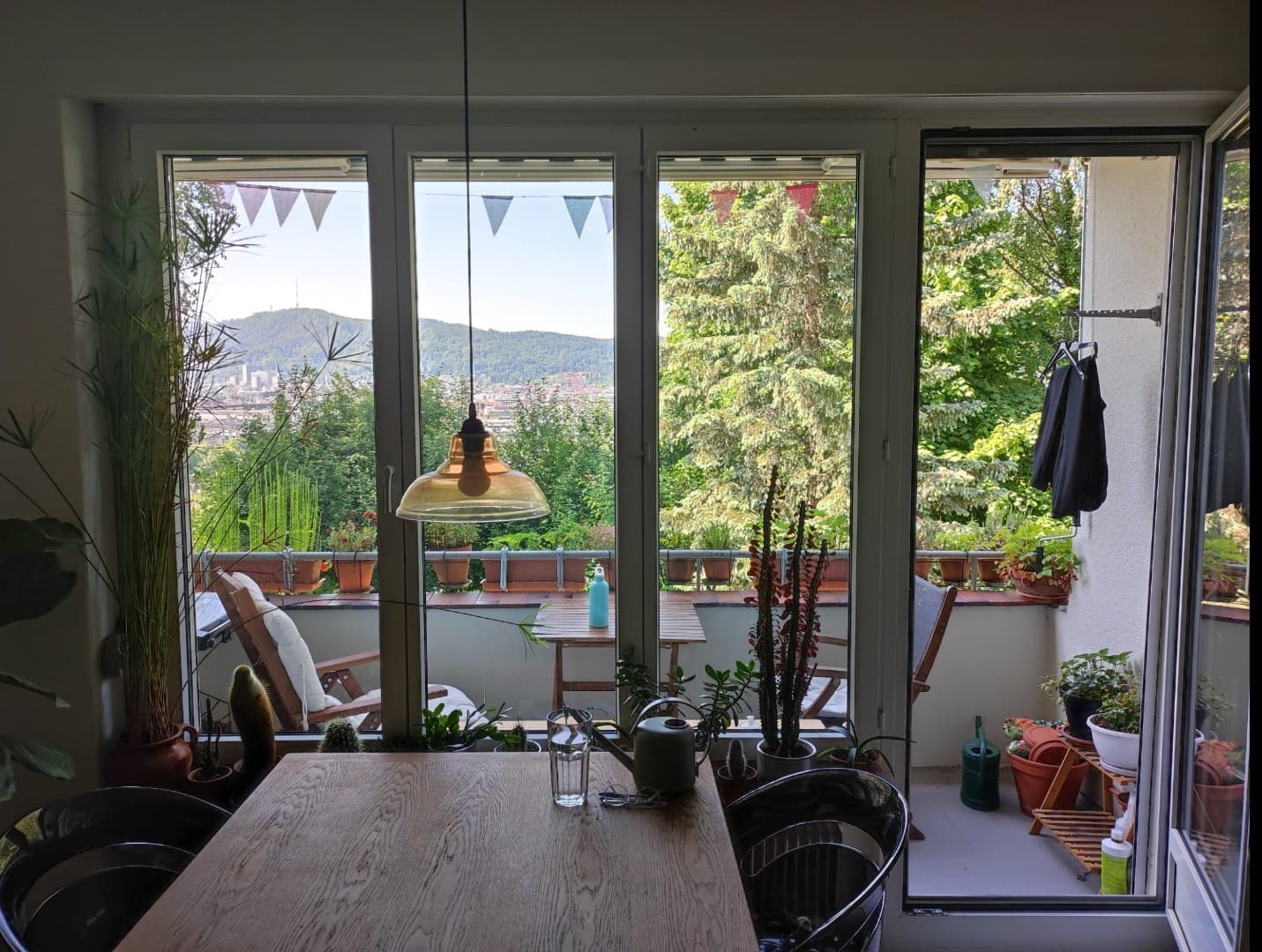 Wir suchen ab 1. Februar 2026 eine Mitbewohnerin für ein 12 m² grosses Zimmer gegen Norden (teilmöbiliert oder leer) befristet auf 1 Jahr.