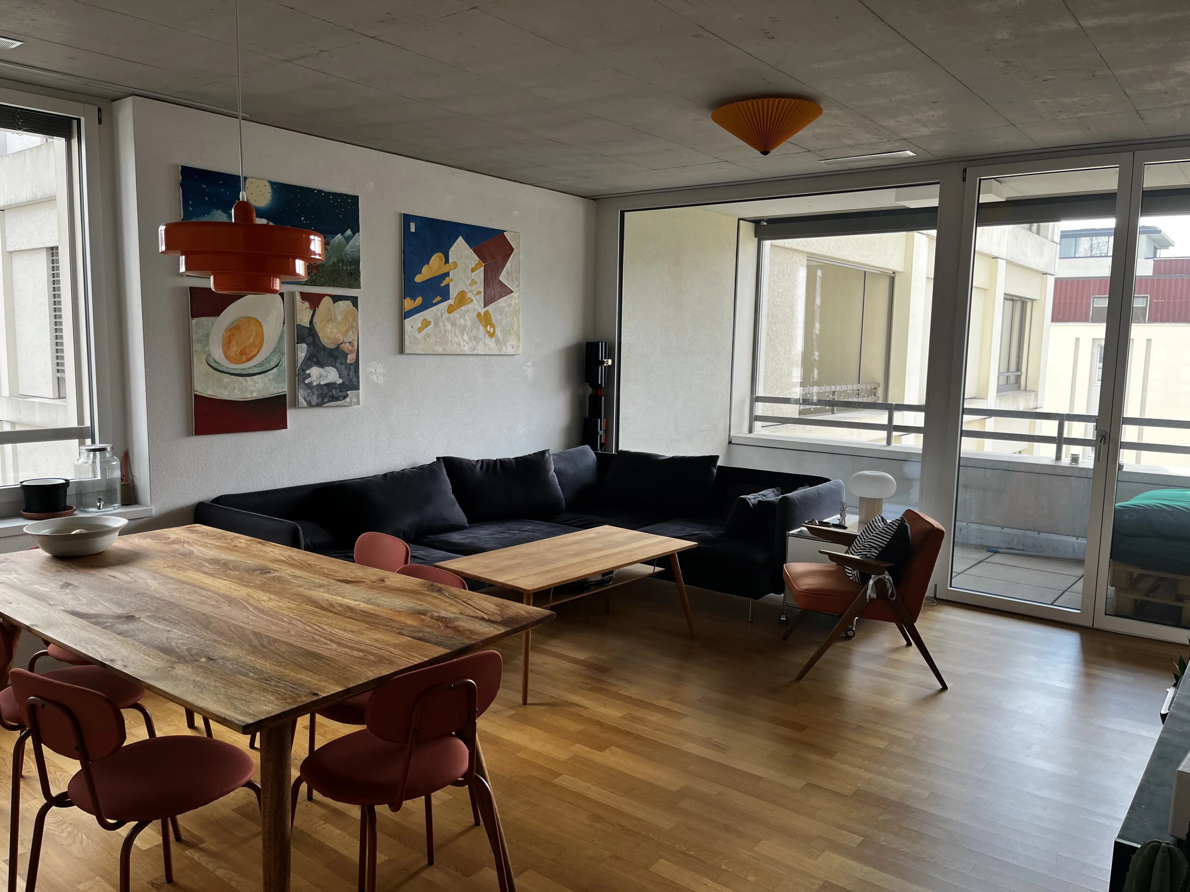 Hello, my dear future flatmate and all the other desperate flat hunters! You will be living in a nice 16 m2 room, facing the morning sun and enjoying the quiet surrounding. You will be getting a flat on the 4th floor, with a balcony, dishwasher, washing machine and tumbler (no schedules my dear friend😎), walls, doors and a flatmate, who regularly walks inside of a flat, leaves for work, does some aikido and occasionally cooking)). The flat is located 5 min walk away from Altstetten Bahnhof and 1 min from bus station Letzibach. Nearby Aldi and Coop. To get all of the above you just have to be above 28 (cm 🤪) years old, male or female, have a job and be aware of others living around you. Animals are not allowed, so the only ones you can have are dead fish and meat in the fridge. Please, write me shortly about yourself, your job and what are you searching for. See you at our future place)