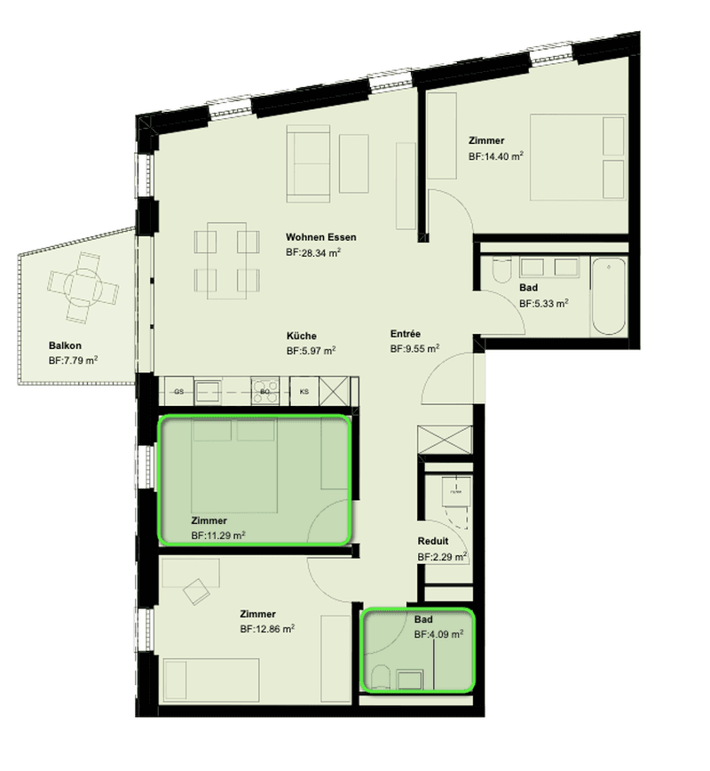 Da die Wohnung möbiliert ist, wird ein Depot einer Monatsmiete angefordert während der Mietdauer.