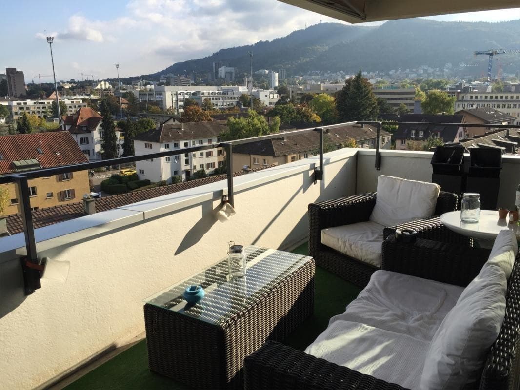 The 4.5 room apartment is a spacious 145m2 and has every conceivable comfort to offer and all other rooms are of course available for shared use. In addition, the apartment has a large balcony with a distant view and morning sun as well as a magnificent view of the Glarus mountains and the Üetliberg.