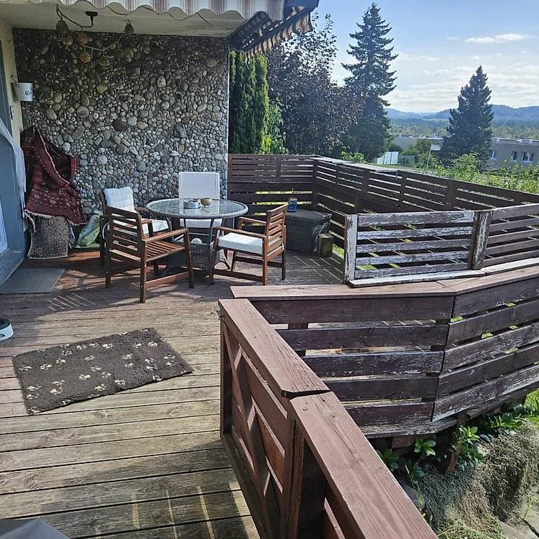 Freistehendes Haus mit großem Garten und einer schönen Aussicht.