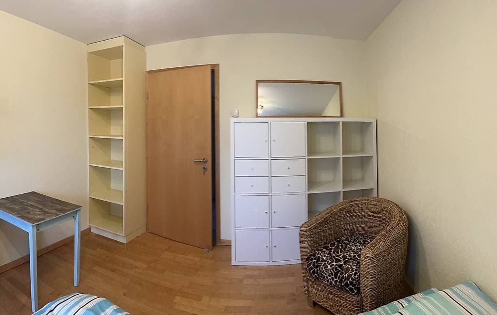Zur Mitbenutzung geräumiges Badezimmer auf Etage, moderne Küche mit Glaskeramik und eigener Kühlschrank für Mitbewohner. Grosser Garten mit Terrasse, Waschküche mit Secomat oder Stevi im Garten.