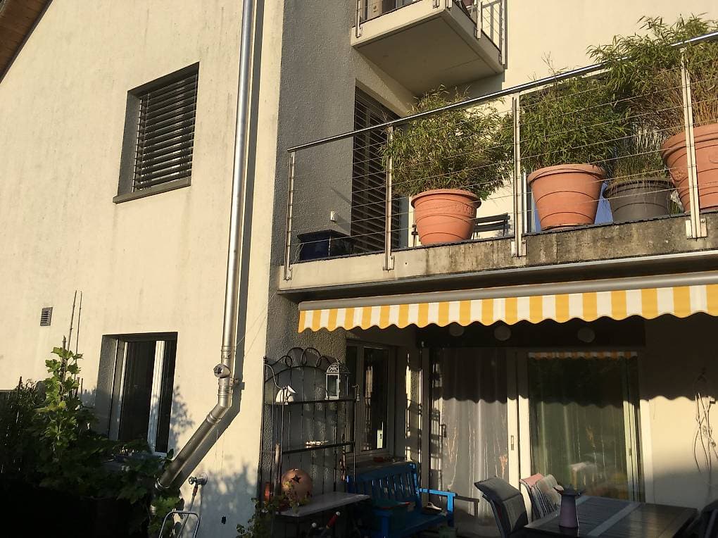 Zur Mitbenutzung das Badezimmer auf der Etage, moderne Küche mit Glaskeramik, eigener Kühlschrank für Mitbewohner, grosser Garten mit Terrasse, Waschküche mit Secomat oder Stevi im Garten.
