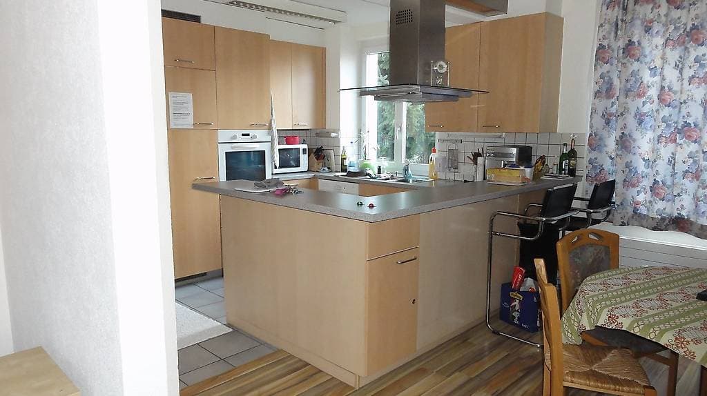 Zimmer möbiliert, in WG-Haus, 2 Nasszellen, Garten Loggia, grosse Küche, Waschküche und Trocknungsraum, Tiefgefrierer, gutes Team, Nebenkosten Fr 200.