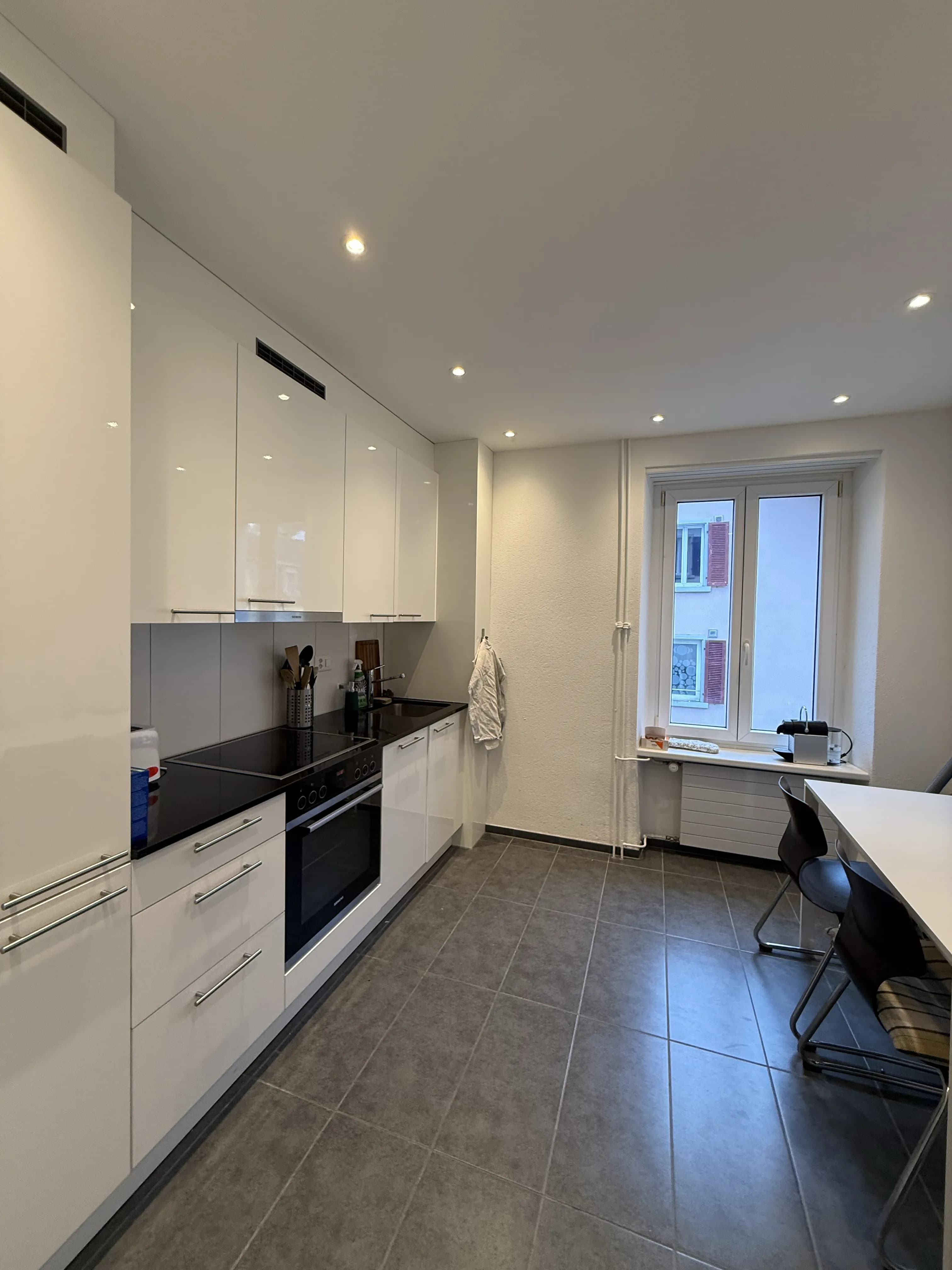 Ab 01.03 oder nach Vereinbarung wird mein WG Zimmer frei. Zur gemeinsamen Nutzung stehen dir eine moderne, voll ausgestattete Küche mit viel Stauraum zur Verfügung. Die Wohnung ist insgesamt gepflegt und hell.