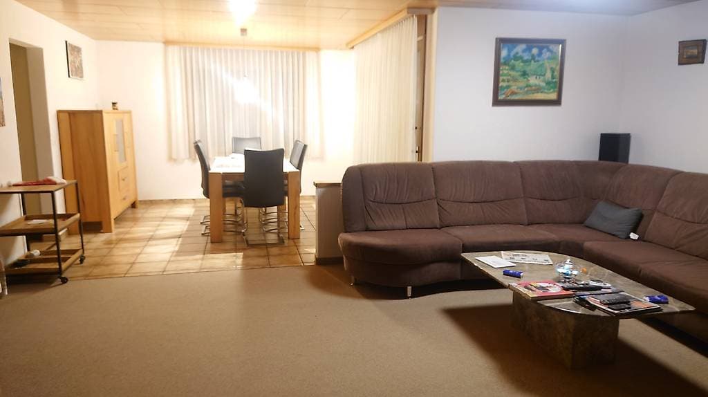 - Grosses Wohnzimmer mit Couch und Fernseher