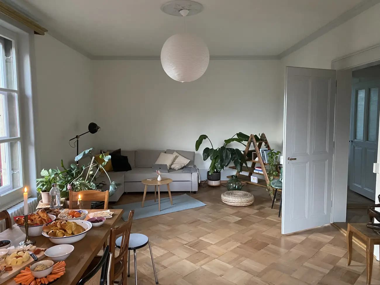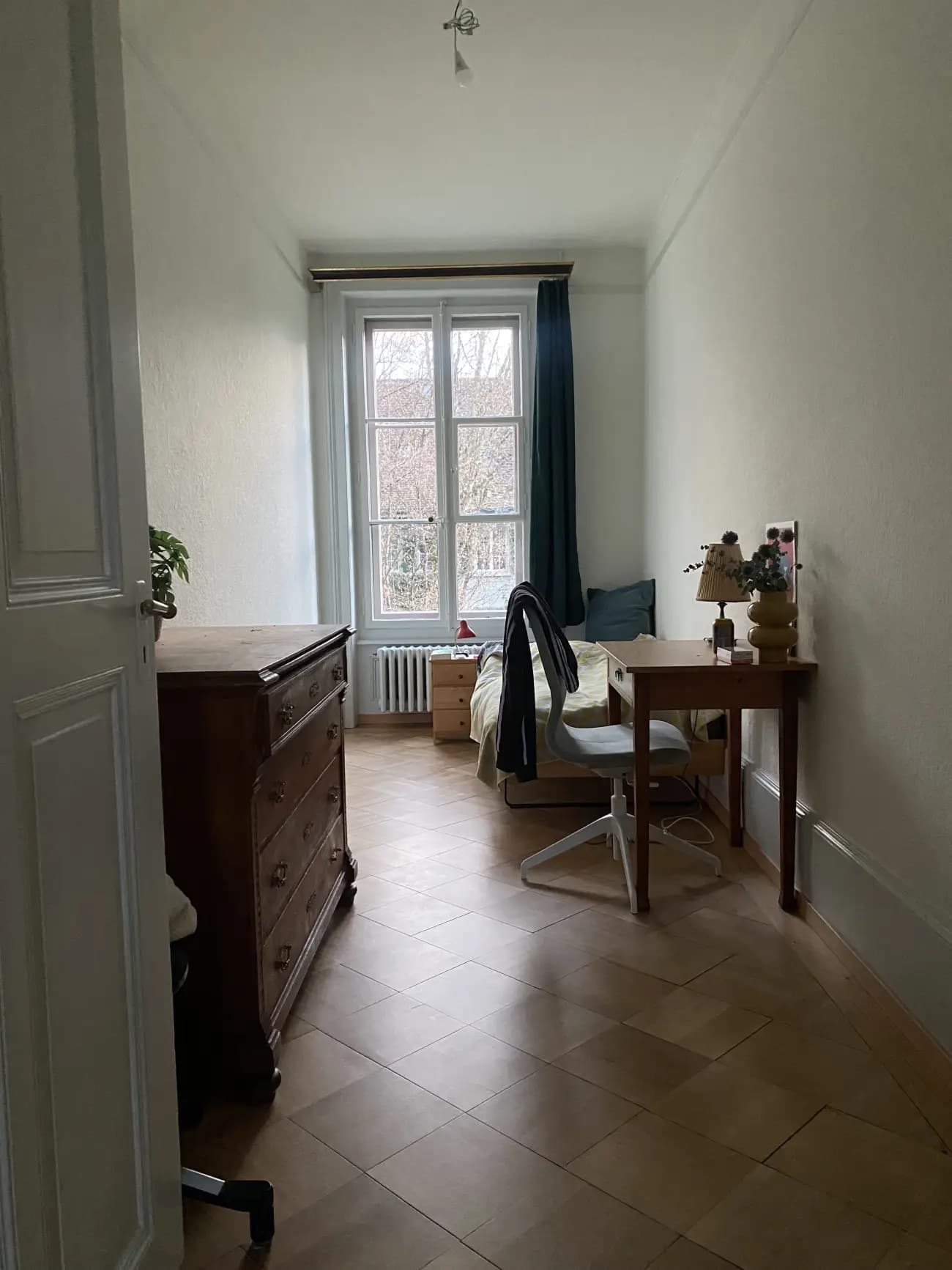 Wir wohnen zu dritt in einer schönen 5.5 Zimmerwohnung mit Wohnküche, Wohnzimmer mit sonniger Terrasse und grossem Garten inklusive Blutbuche. Für unser kleinstes möbliertes Zimmer (5.4 x 1.9m) suchen wir eine Person (FLINTA-Person bevorzugt), die 2-3 Nächte pro Woche ein Bett an einem warmen Ort möchte. Wie die Wohnung schön ist, ist sie auch hellhörig. Es eignen sich daher Menschen mit einem tiefen Schlaf.