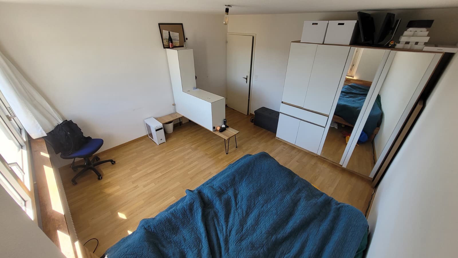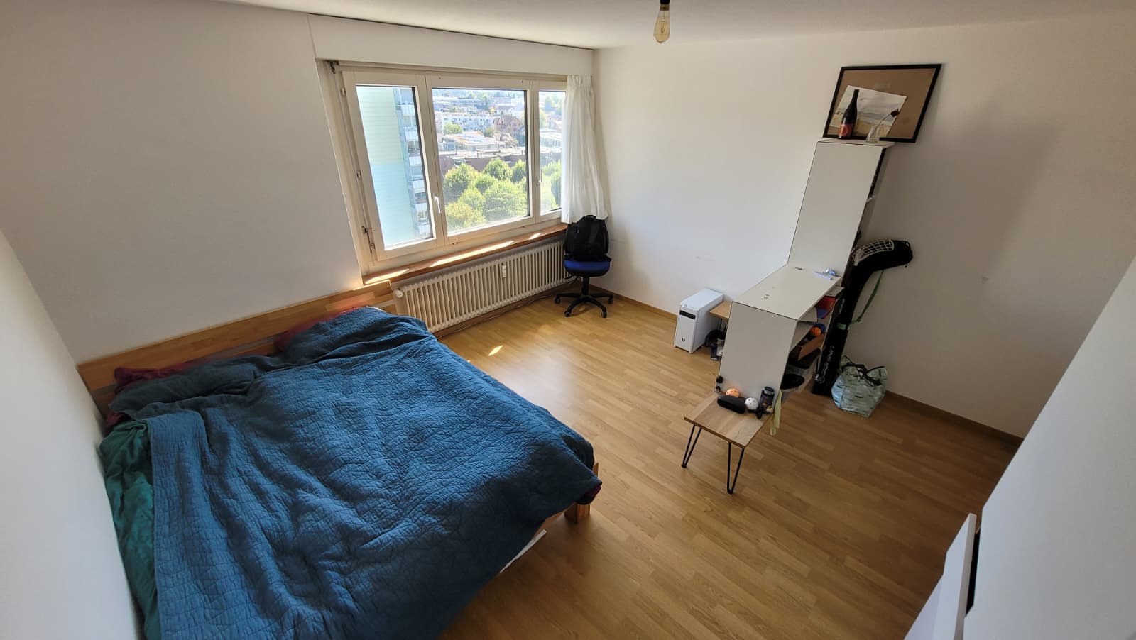 Ab sofort ist in unserer schönen 4.5-Zimmer-Wohnung ein helles, unmöbliertes Zimmer (ca. 16 m²) frei.