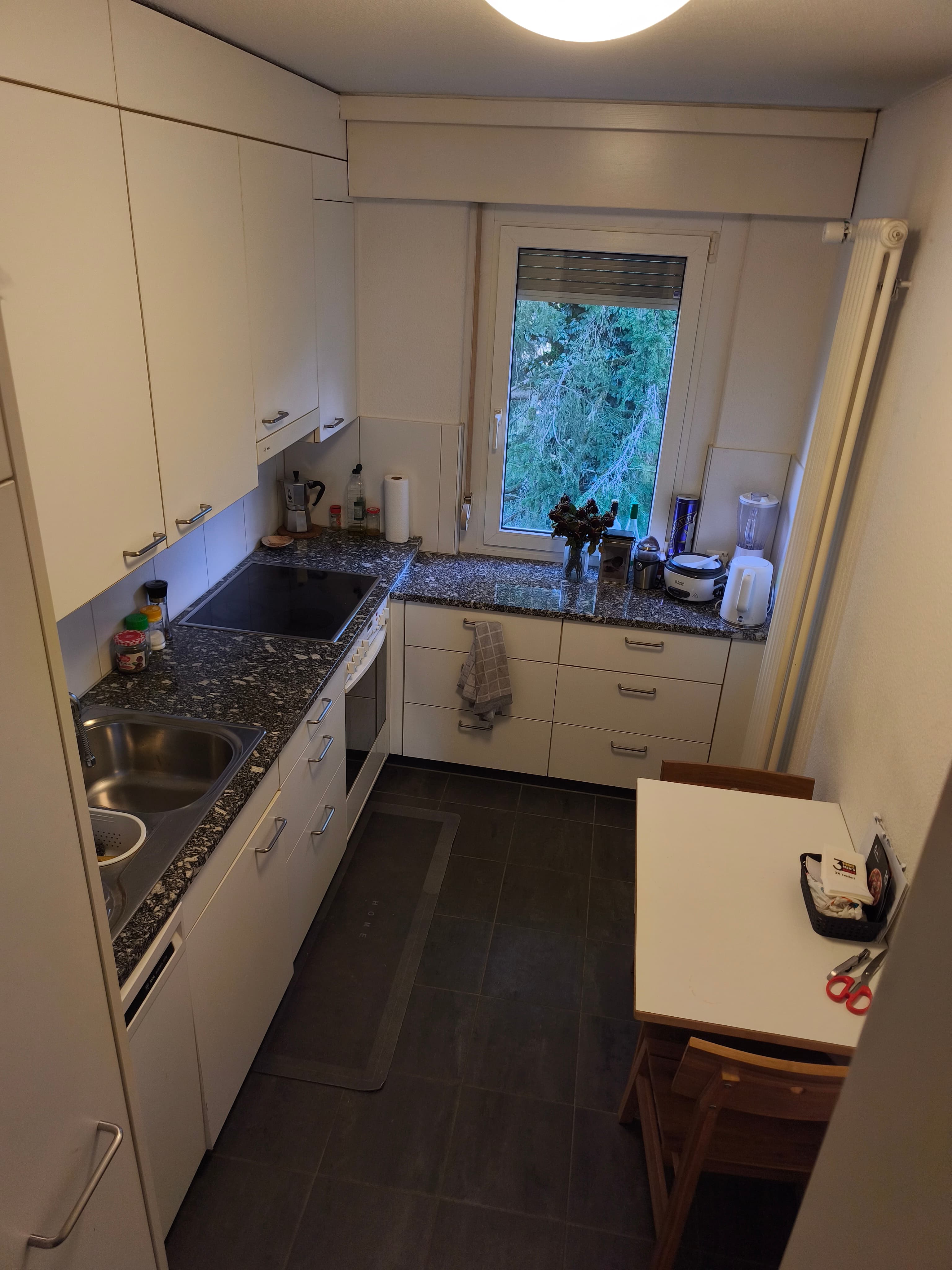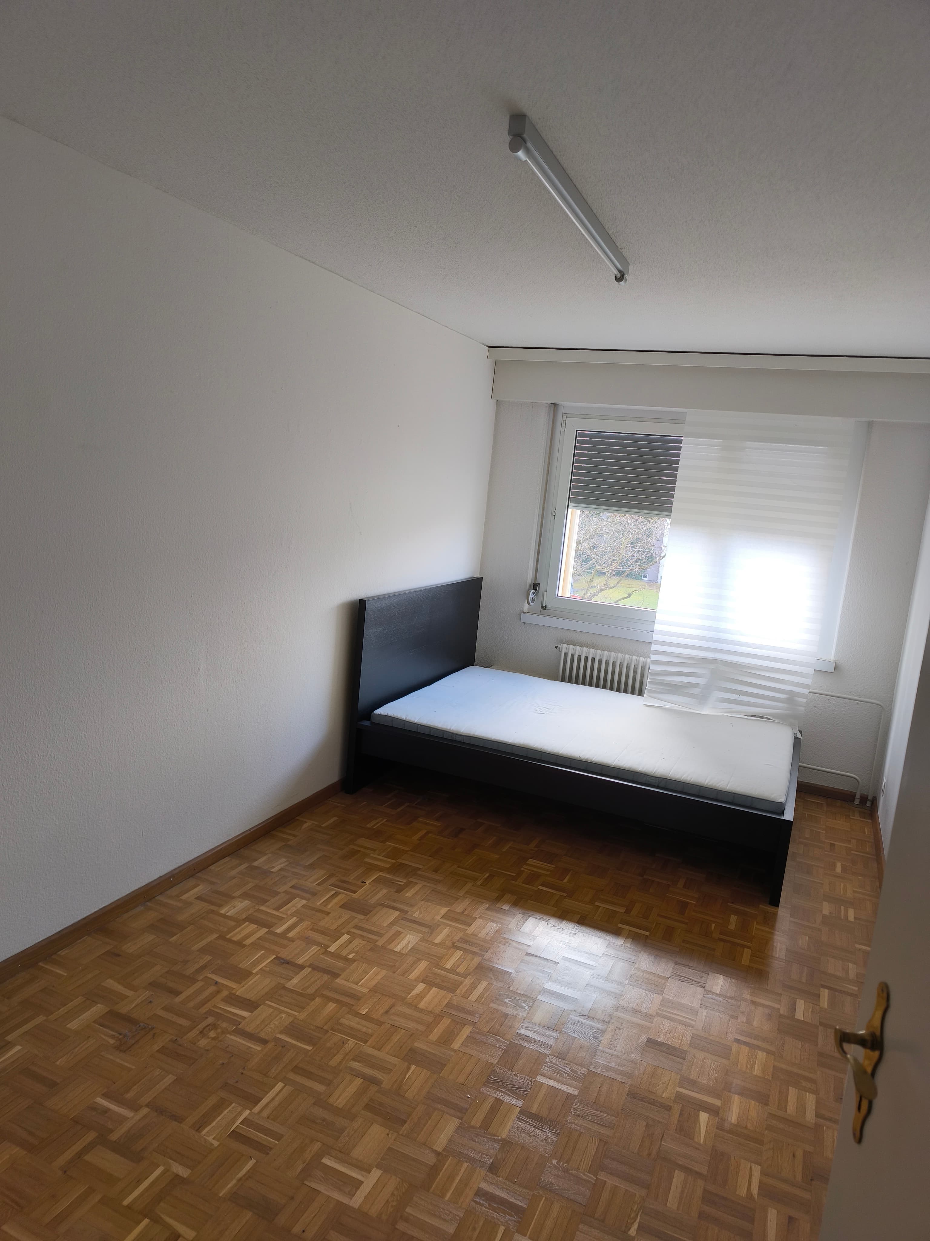 Die Wohnung ist ungefähr 110m² gross, hat grosse Räumlichkeiten, drei Schlafzimmer, ein Badezimmer, ein separates WC und einen schönen Ausblick auf den Wald. Mehrere Räume können gerne zusammen neu möbeliert werden.