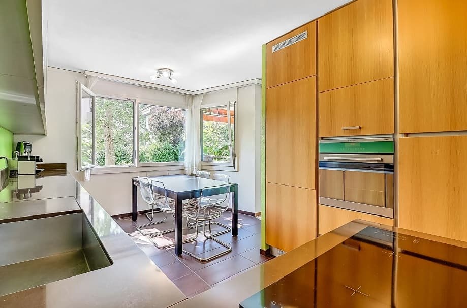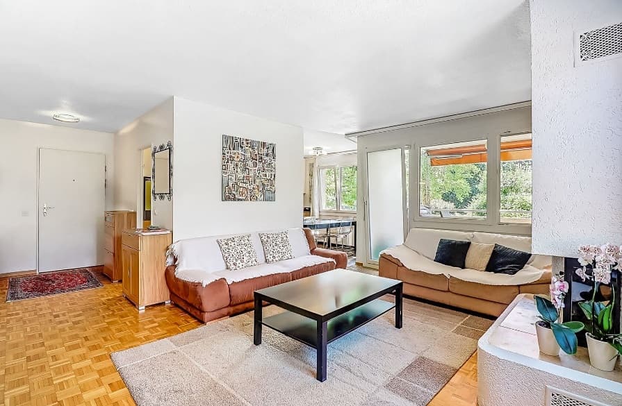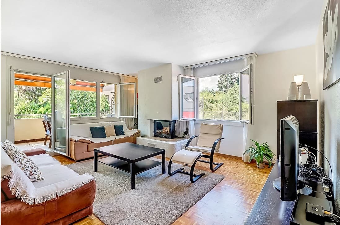 Bel appartement à Bussigny de 104 m2 avec 3 chambres en colocation chacune equipée de lit, penderie et bureau. Cuisine moderne ouverte agencée, equipée lave vaiselle, avec salon TV, cheminée et 2 salles de bain (douche et baignoire)