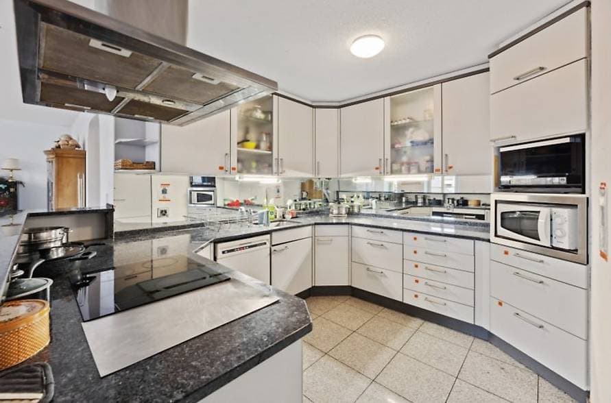 Die Etage verfügt über 1x WC/Bad und 1xWC/Dusche. Waschmaschine und Tumbler stehen frei zur Verfügung. Die grosse gemeinsame Küche ist ausgestattet mit Glaskeramikherd, Backofen, Geschirrspüler, Mikrowelle sowie Steamer. Die Etage verfügt zusätzlich über eine grosse Terrasse mit Grillecke. Des Weiteren kann mit Tischfussball die Freizeit verbracht werden.