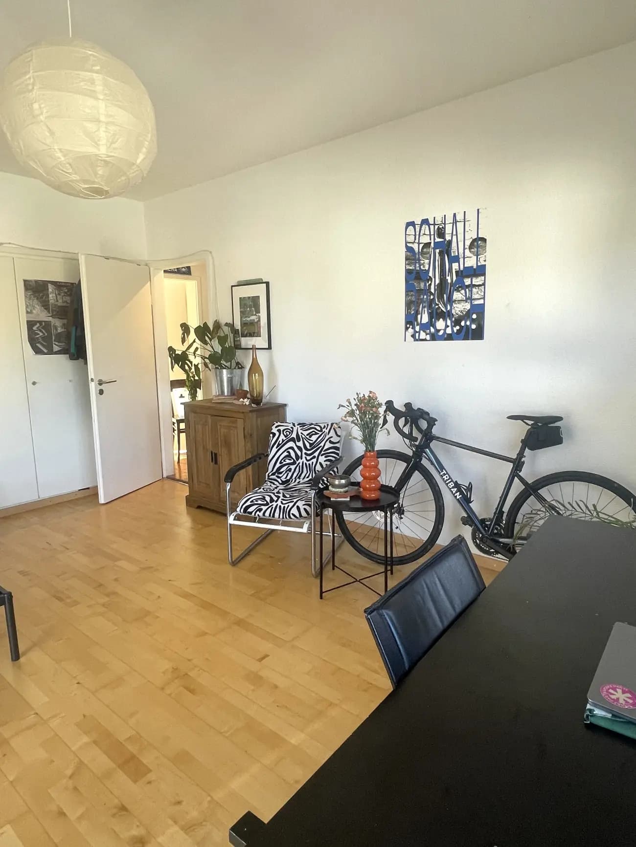 Da ich (Mireille) per 1.1.26 in eine eigene Wohnung ausziehen werde, suchen ich/wir einen Nachfolger:in für mein schönes Zimmer in dieser WG (natürlich wäre das Zimmer dann unmöbliert). Am besten passt jemand Geselliges, der Interesse hat, sich am Zusammenleben zu beteiligen und nicht nur eine Zweck-WG sucht. Das kann heissen, ab und zu zusammen zu kochen, zu putzen, Filmabende zu machen oder Ähnliches.