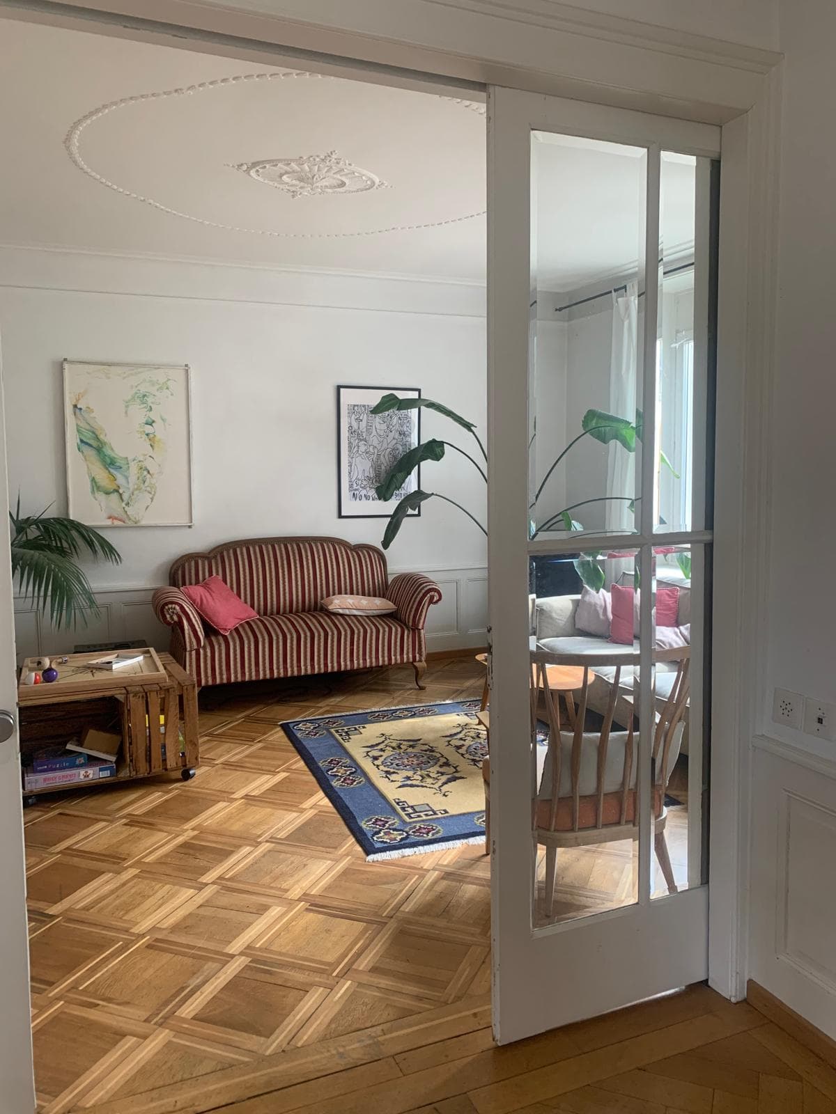 Das Haus liegt im Loretoquartier, perfekt um die Vorzüge der Stadt in einer schönen, ruhigen Umgebung zu geniessen. Zur Altstadt sind es 5 Gehminuten, nächste Bushaltestelle ca. 200 m, nächste Einkaufsmöglichkeit 600 m. Wir teilen uns eine grosszügige Küche mit Geschirrspüler, zwei helle Wohnräume, Terrasse, Garten mit Beeten, Keller mit Waschmaschine und Tumbler sowie Badezimmer mit Toilette auf jedem Stock. Das freie Zimmer ist im ersten Stock, misst ca. 22m2 und ist südseitig ausgerichtet.