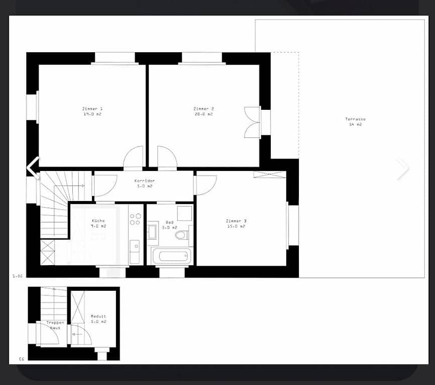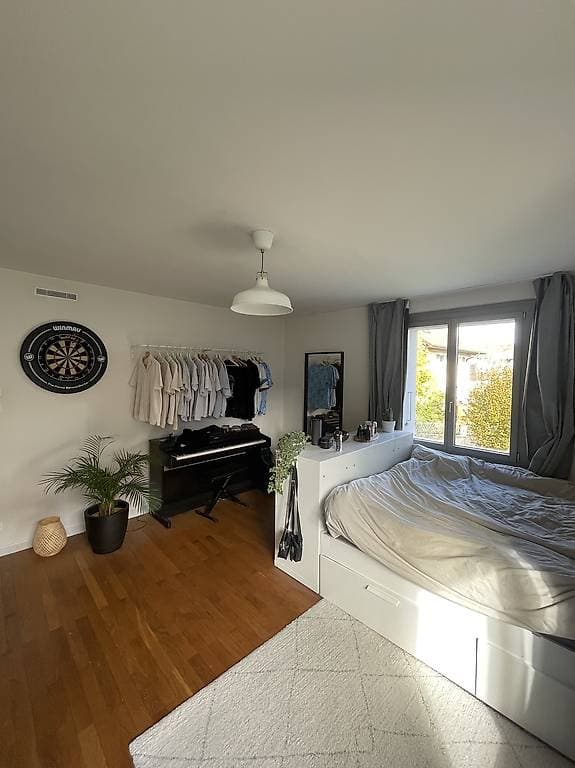 Das Zimmer ist ca. 19m2 gross und dank zwei grossen Fenstern schön hell. Die 3.5-Zimmer-Wohnung hat insgesamt 78m2 und das absolute Highlight ist die riesige Terrasse mit 54m2.