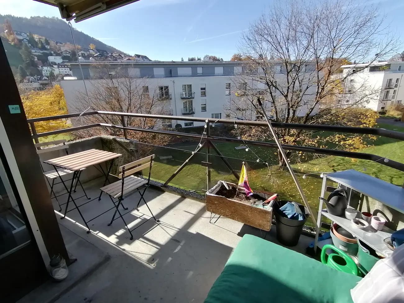 Wohnung: 4.5 Zimmer mit Balkon, moderne Küche, Wohnzimmer, 2 Badzimmer mit je Dusche/Badewanne. Eine eigene Waschmaschine und Tumbler befinden sich in der Wohnung. Kellerabteil und Velokeller vorhanden.
