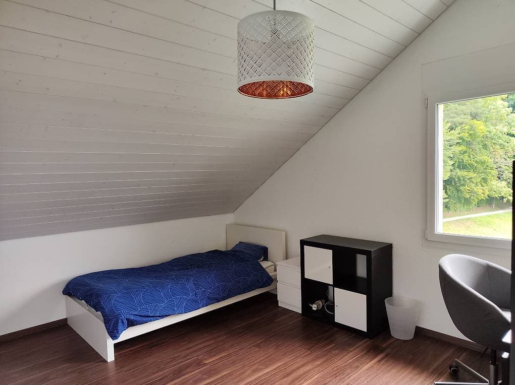 Helles, vollständig möbliertes Zimmer in moderner Attika Maisonettewohnung in Zofingen. Ca. 20 m2, 3. Stock. Lift. Nur NR. Einzug ab 1. Januar 2026 möglich. Das Zimmer kann auch für kürzere Zeit gemietet werden.