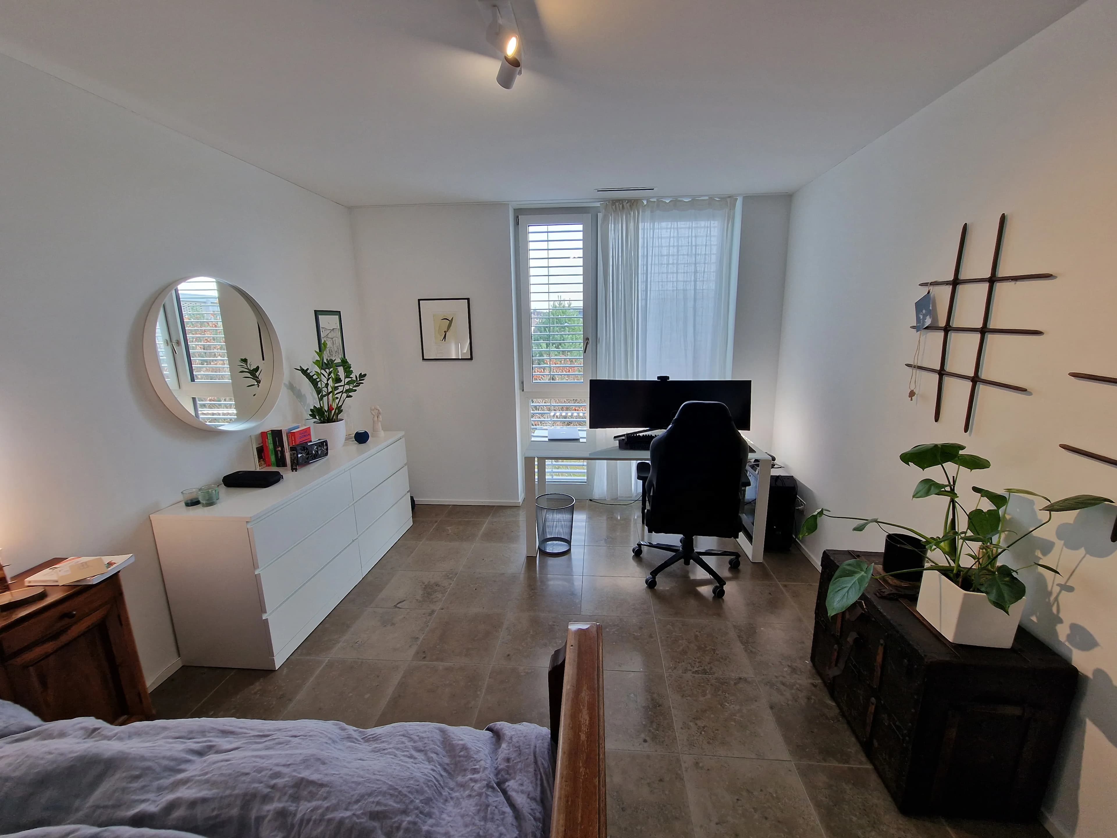 A spacious room is becoming available in a 3.5-room shared apartment in Geroldswil, in a very convenient location: the building is directly above the Coop supermarket and right next to the bus stop, with a connection to Zürich HB in about 23 minutes.