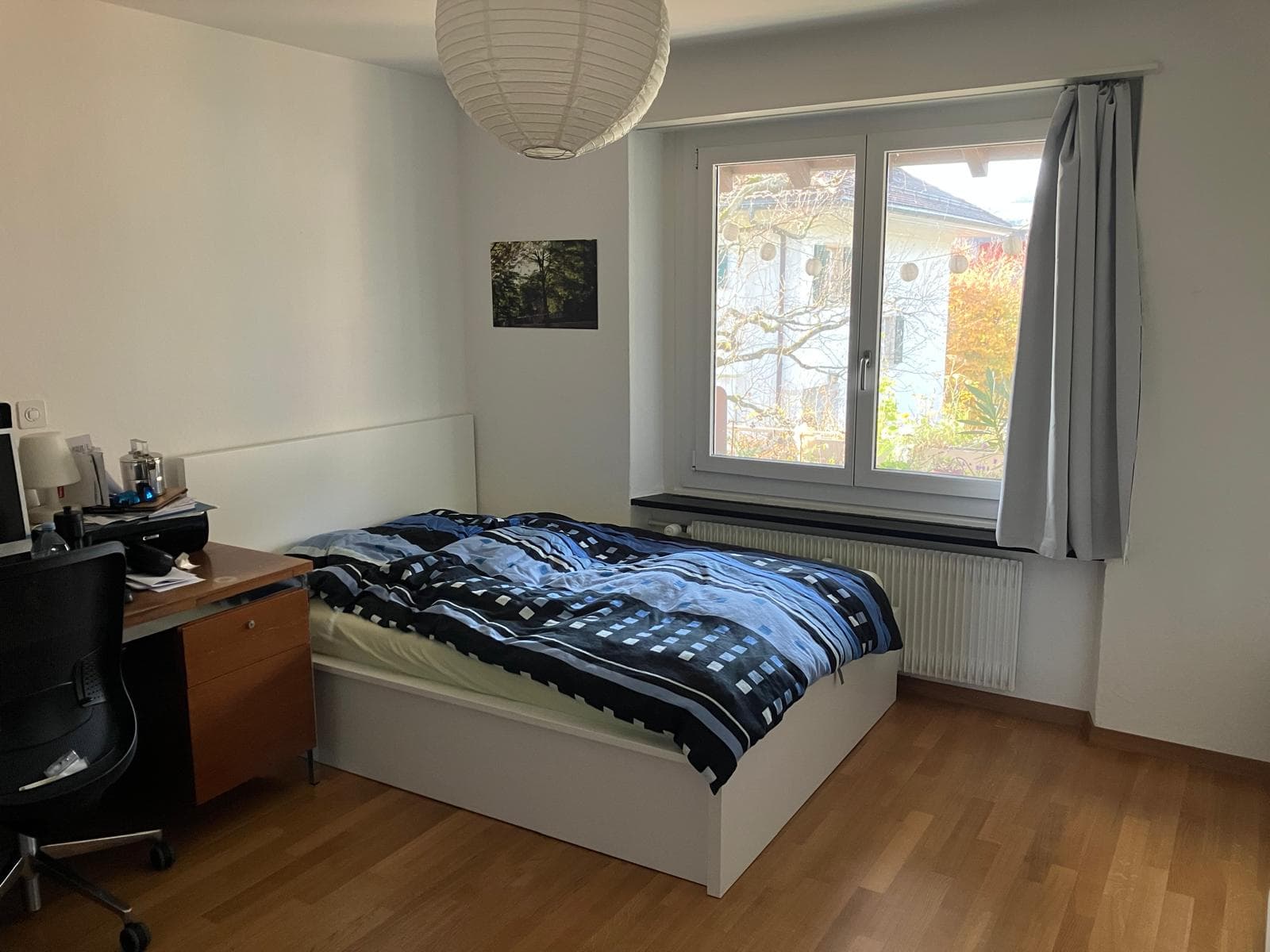 Dein Zimmer ist 18m2 gross, hat einen Einbauschrank und eine tolle Aussicht auf den Gurten und ins Grüne.