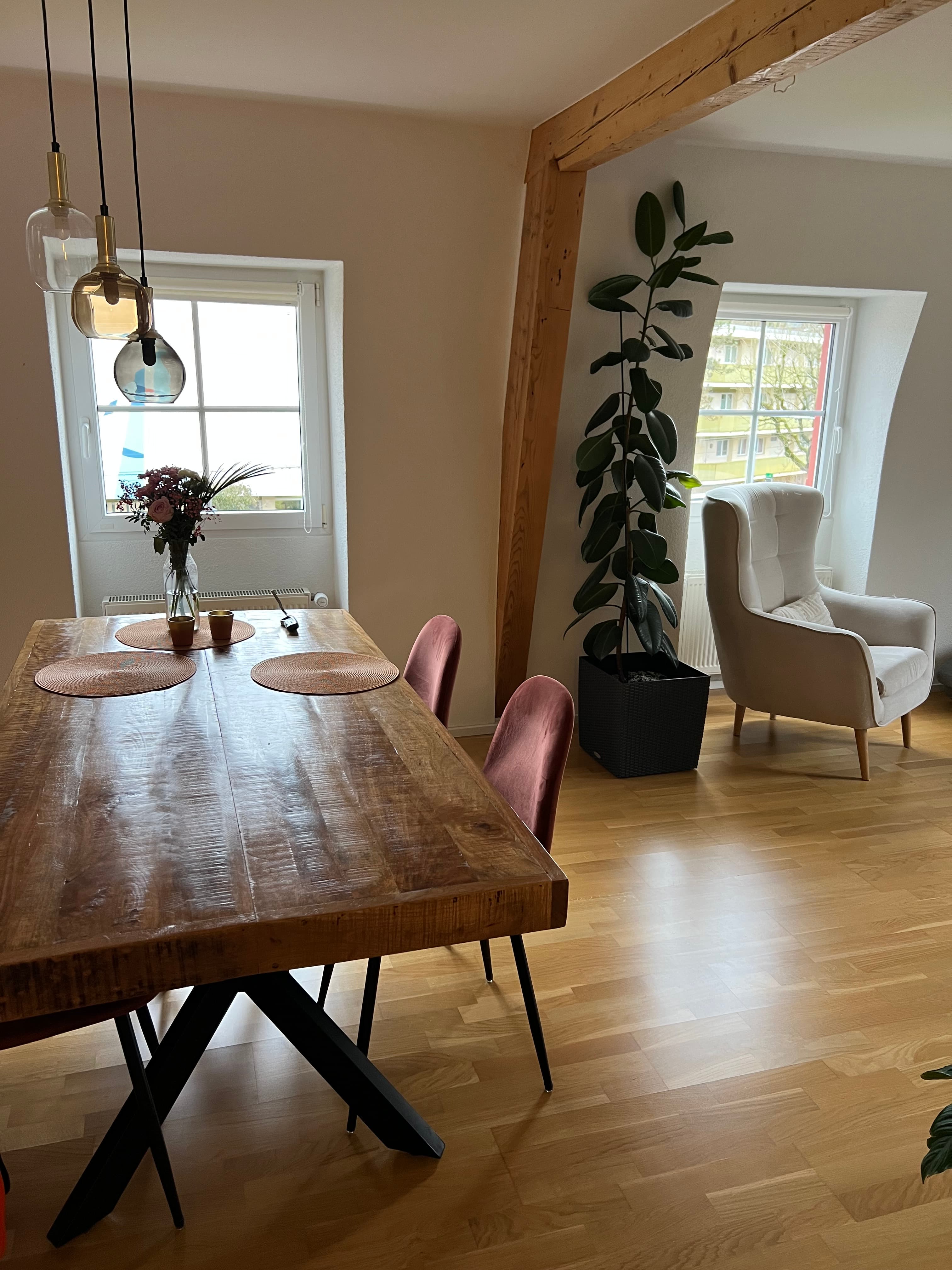 Dein Mitbewohner ist ein Anfang 40 jähriger Lehrer, welcher regelmäßig nach Zürich pendelt zu seiner Freundin, weshalb du die Wohnung meistens für dich haben wirst. Im Frühling nutzbar ist auch eine Terrasse und ein Balkon als Sitzgelegenheit im Garten. Die Wohnung ist vollausgestattet mit einem Wäscheturm und einer modernen Küche mit Ofen, Geschirrspüler und Keramikkochplatte.