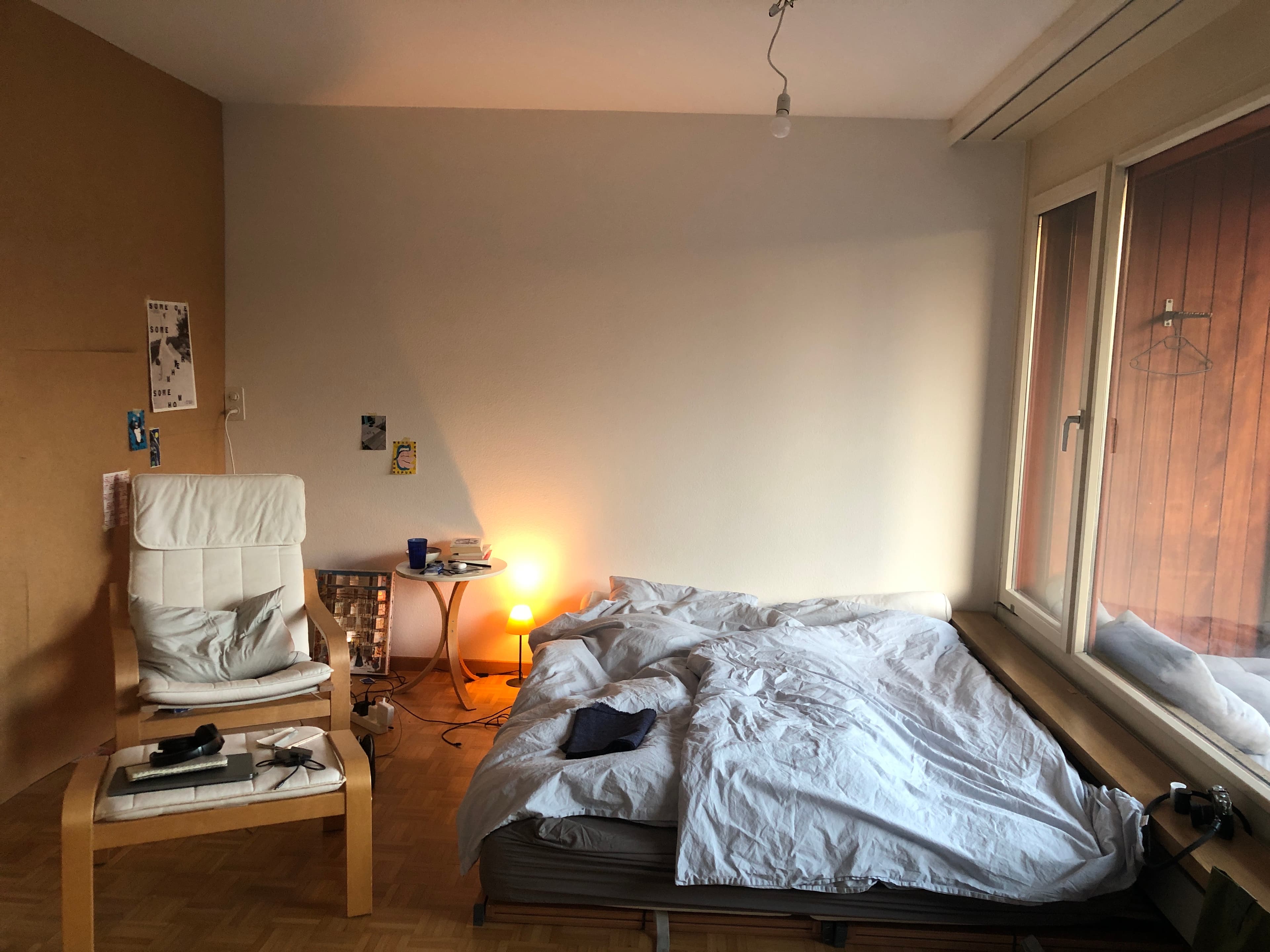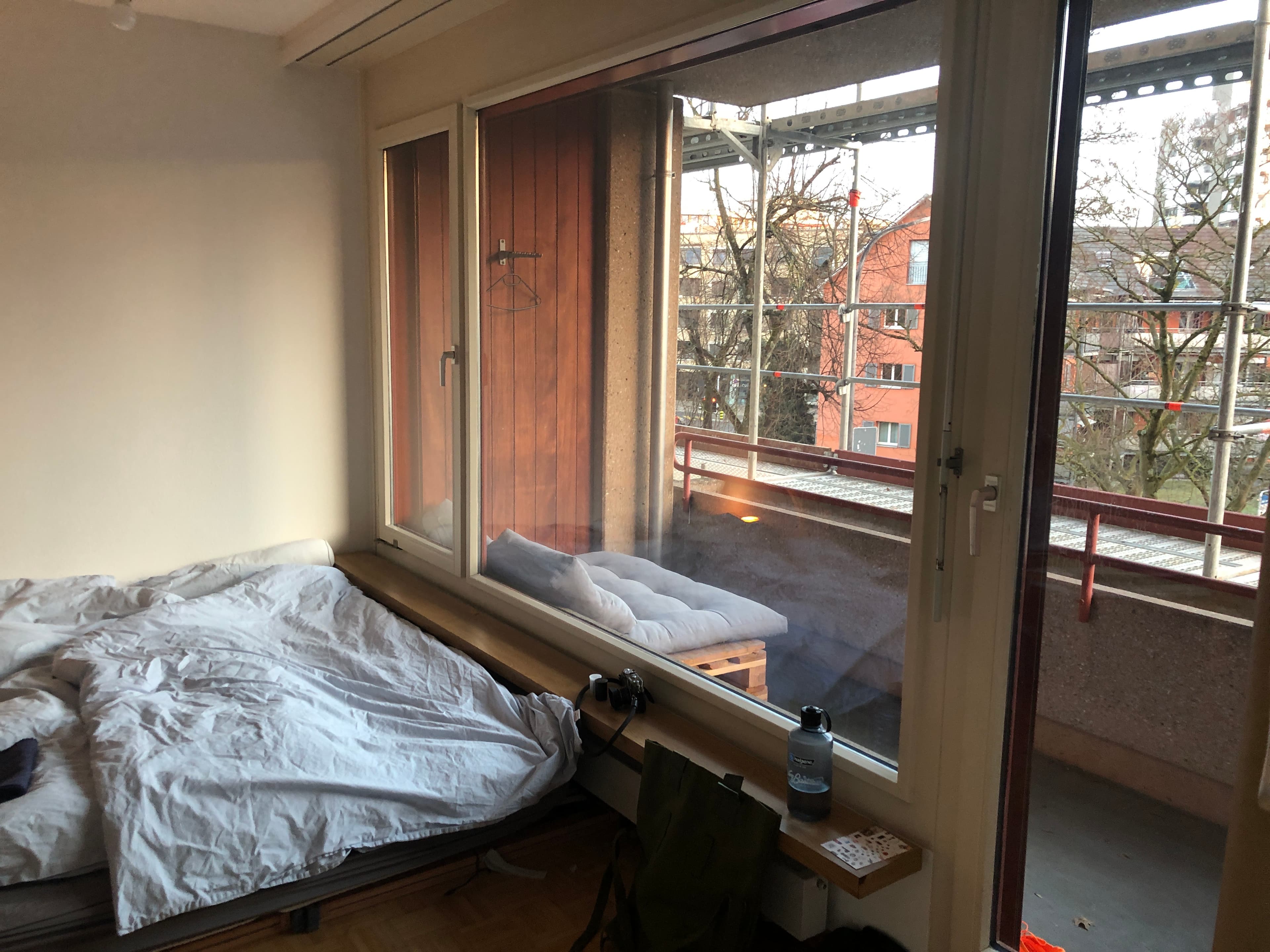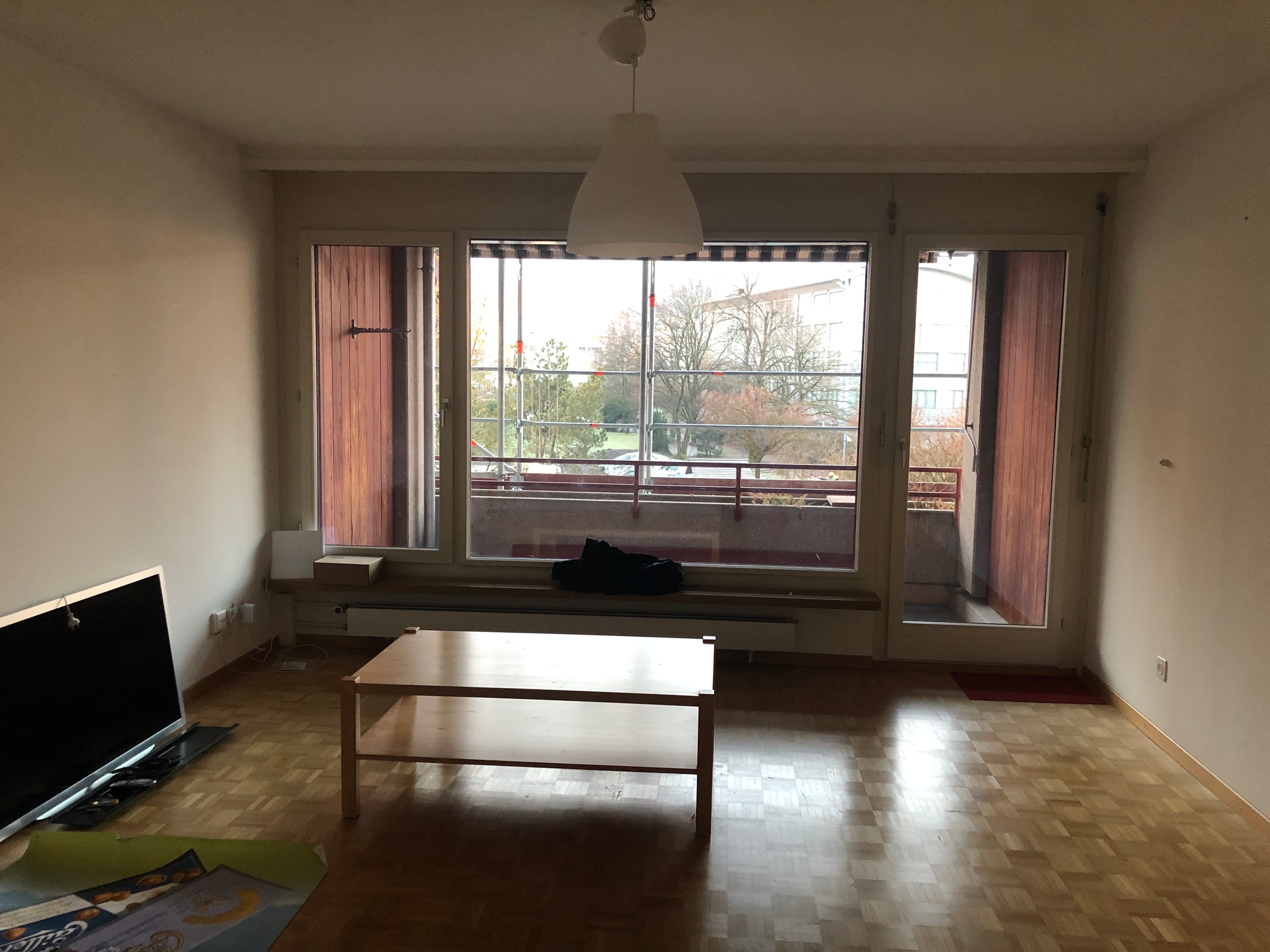 The rent is CHF 600 per month, which includes everything except Wi-Fi (about CHF 10 per person). It's a JUWO apartment, so you'll need to meet their criteria. The building is currently being renovated, and we'll (probably) have to move out in July because they'll be starting interior work then. However, a follow-up solution is possible!