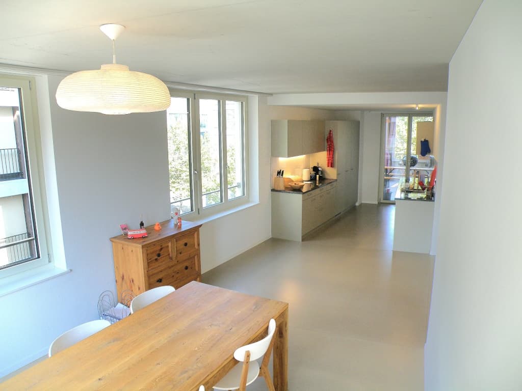 Die Wohnung gehört einer Wohngenossenschaft, in der Umweltschutz einen hohen Stellenwert hat. Man darf nur ein Auto besitzen, wenn dies beruflich benötigt wird. Es stehen diverse alternative Mobilitätsangebote (wie z.B. Car-Sharing) auf dem Areal zur Verfügung und wir sind gut mit dem ÖV angeschlossen. Zusätzlich gibt es einen Genossenschaftsanteil von 9.000 Franken, der verzinst wird und den du am Ende wieder zurückbekommst.
