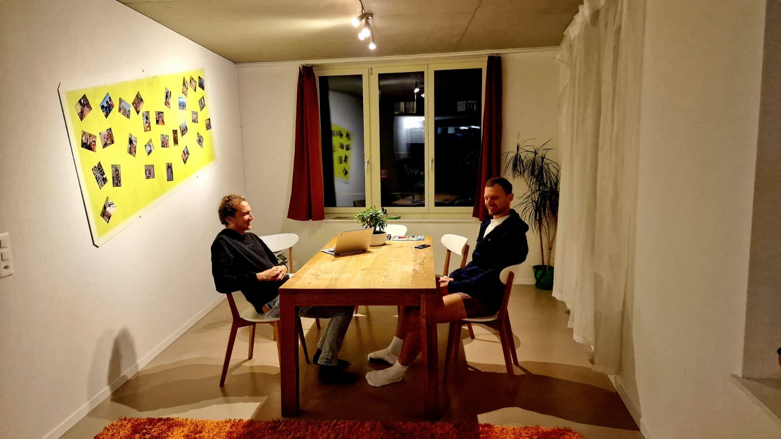 Wir sind Martin (36, Software Engineer) und Felix (30, Unternehmensberater). Da wir beide berufstätig sind, sind wir vor allem am Abend und Wochenende in der WG anzutreffen. Dabei geniessen wir unseren Feierabend gerne auch mal bei einem gemeinsamen Abendessen oder Bier. Wir praktizieren derzeit in unserer WG einen Kühlschrankkommunismus, das heisst, wir teilen in der Regel alle Lebensmittel, die im Kühlschrank sind (und nicht angeschrieben sind), und gehen abwechselnd einkaufen. Das spart uns nicht nur Geld, sondern ganz besonders auch Zeit und Stress. Wir vertrauen einander und geniessen die Vielfalt an Essen. Gekocht wird dann für alle, die gerade in der WG sind. Wir finden, das ist eine tolle Art, in einer WG zu leben.