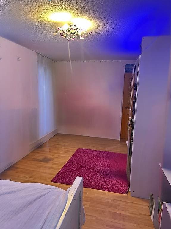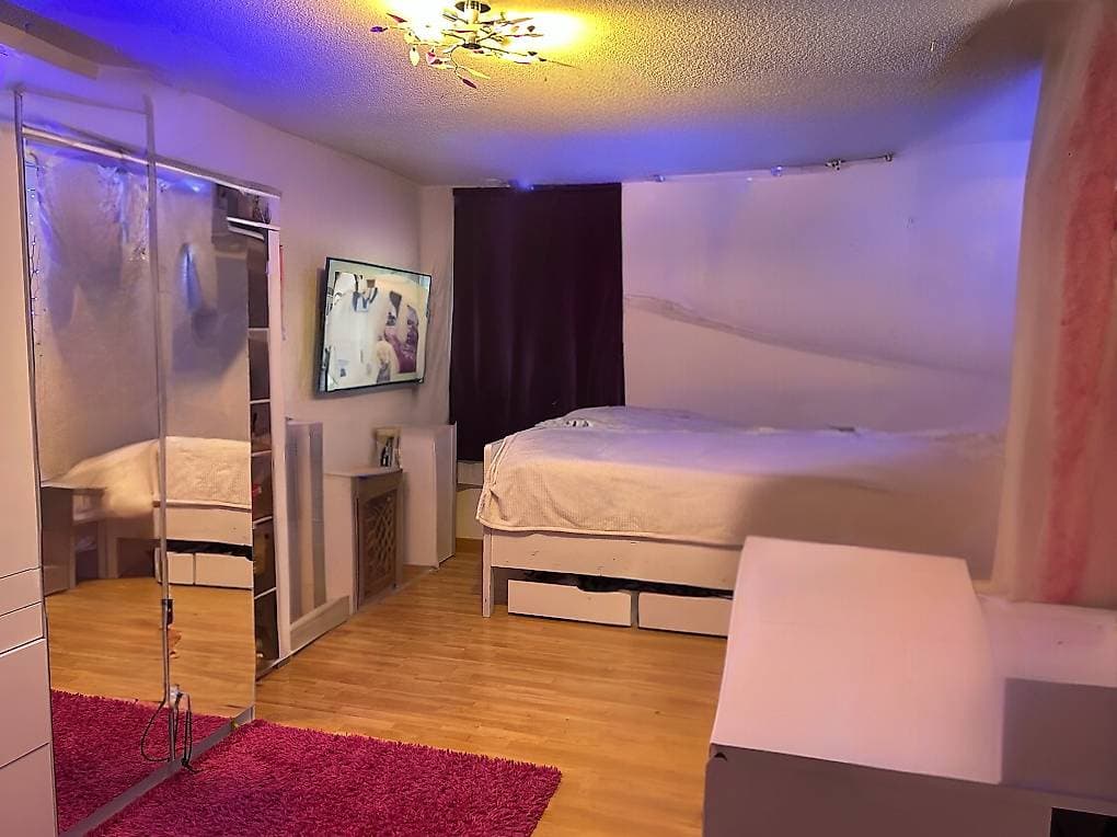 Dein Zimmer ist grosszügige ca. 18 m² gross & lichtdurchflutet . Es ist möbliert mit einem schwarzen- lederimitat - Doppelbett & Nachtisch, Lampe, Spiegelschrank 3 - Türig und Flachbild -Fernseher mit Sideboard & Bürotisch. Hier hast du Netflix und Disney+dies ist im Mietpreis inbegriffen. Das selbe gilt für Serafe- und Stromkosten.