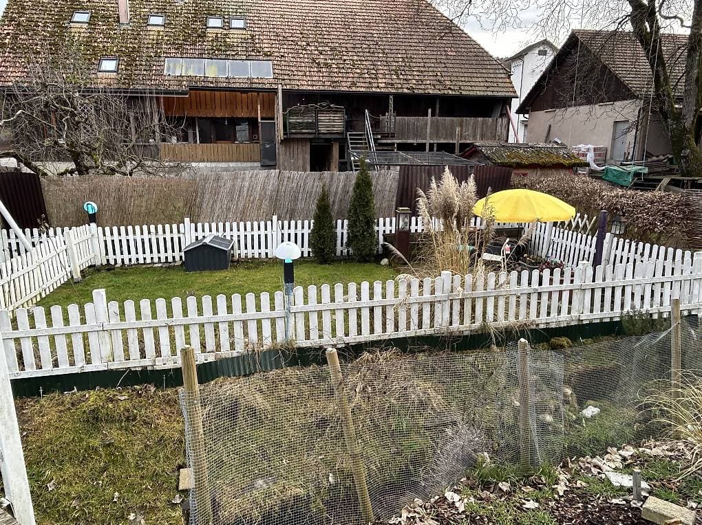 Ebenfalls im Mietpreis inbegriffen ist ein eigener Gartenteil. Dieser gepflegter Garten ist circa 45 m² gross und gehört ganz allein dir. Er ist eingezäunt, mit Beleuchtung + Sitzplatz.Gartenhäuschen vorhanden.Du darfst dich dort frei fühlen und nach deinem Gusto gestalten.