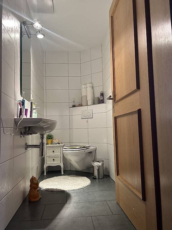 Eigene Waschküche mit einem Tumbler,Waschmaschine und Waschtrog. Garderobe,Esszimmer und ein grosses Wohnzimmer mit dimmbaren Deckenleuchten zur Mitbenutzung.Ebenfalls steht dir ein grosses Badezimmer mit einer grosszügigen Eck-Badewanne und separater verglaster Dusche zur Verfügung . Im Badezimmer ist ein Doppel-Lavabo integriert. Du bekommst eine Hälfte des Spiegelschranks für dich alleine.