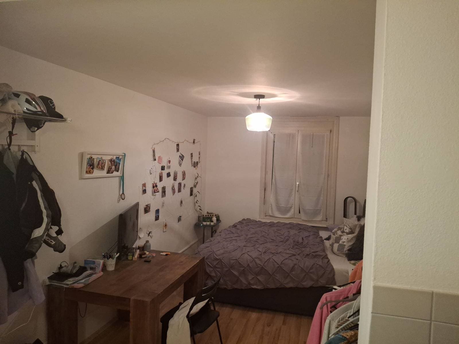 Das Zimmer: Dein schönes Zimmer ist knapp 16qm gross. Ja, es scheint relativ klein, doch aufgrund der rechteckige Form passt einiges rein. Die Miete beträgt ca 450 CHF (inklusive aller Nebenkosten).