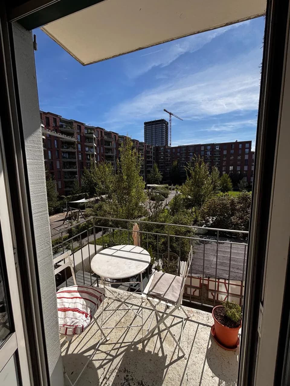 Die Wohnung befindet sich im 2. Obergeschoss. Sie verfügt über eine Waschmaschine und einen Trockner in der Wohnung, ein gemeinsames Bad sowie zwei Balkone – einer bei der Küche und einer beim Wohnzimmer.