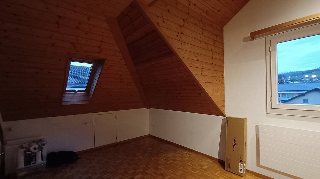 Du bekommst das grösste Zimmer in der 3-Zimmer-Wohnung (Dachgeschoss). Zentral in der Stadt Zug (5 min vom Bahnhof entfernt).