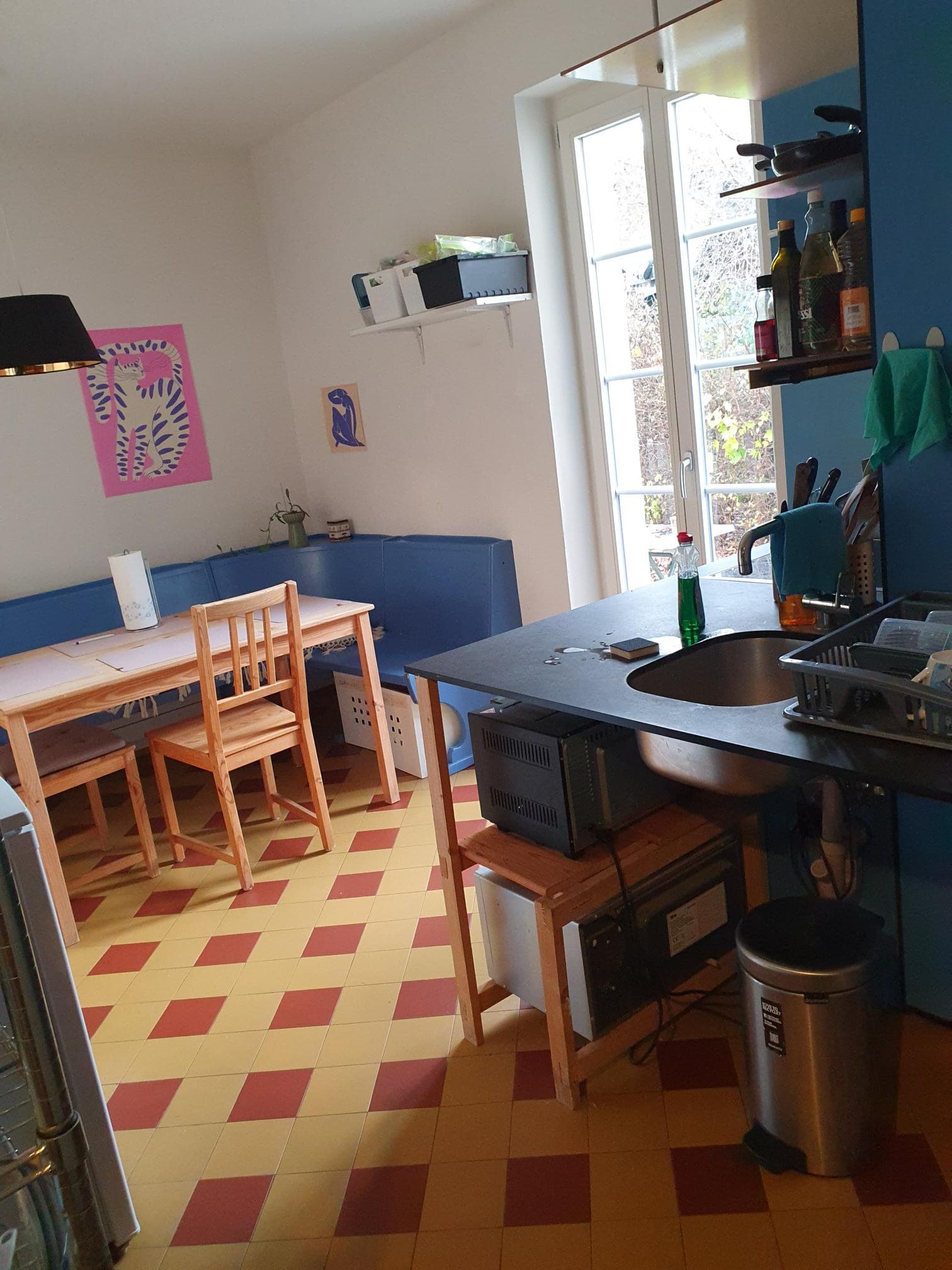 Das helle und ruhige Zimmer wird möbliert vermietet und ist ausgestattet mit einem Bett, Schreibtisch und eingebauten Verstaumöglichkeiten (Reduit+ Regal). Die Küche, das Bad und der Aussensitzplatz sind geteilter Wohnraum mit den 2 Mitbewohnenden. Die WG ist im Quartier Tössfeld. Von hier aus ist der Hauptbahnhof Winterthur zu Fuss innerhalb von 15 Minuten oder mit dem Bus innert 5 Minuten zu erreichen. Im Quartier wohnen viele Studierende und Familien, es ist eher ruhig und es gibt diverse Einkaufsmöglichkeiten.