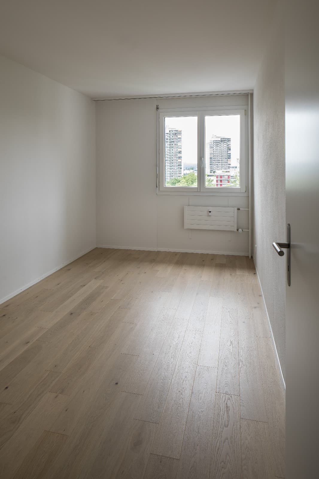 Das Zimmer ist 12m² gross und hat eine schöne Sicht auf ein Feld.