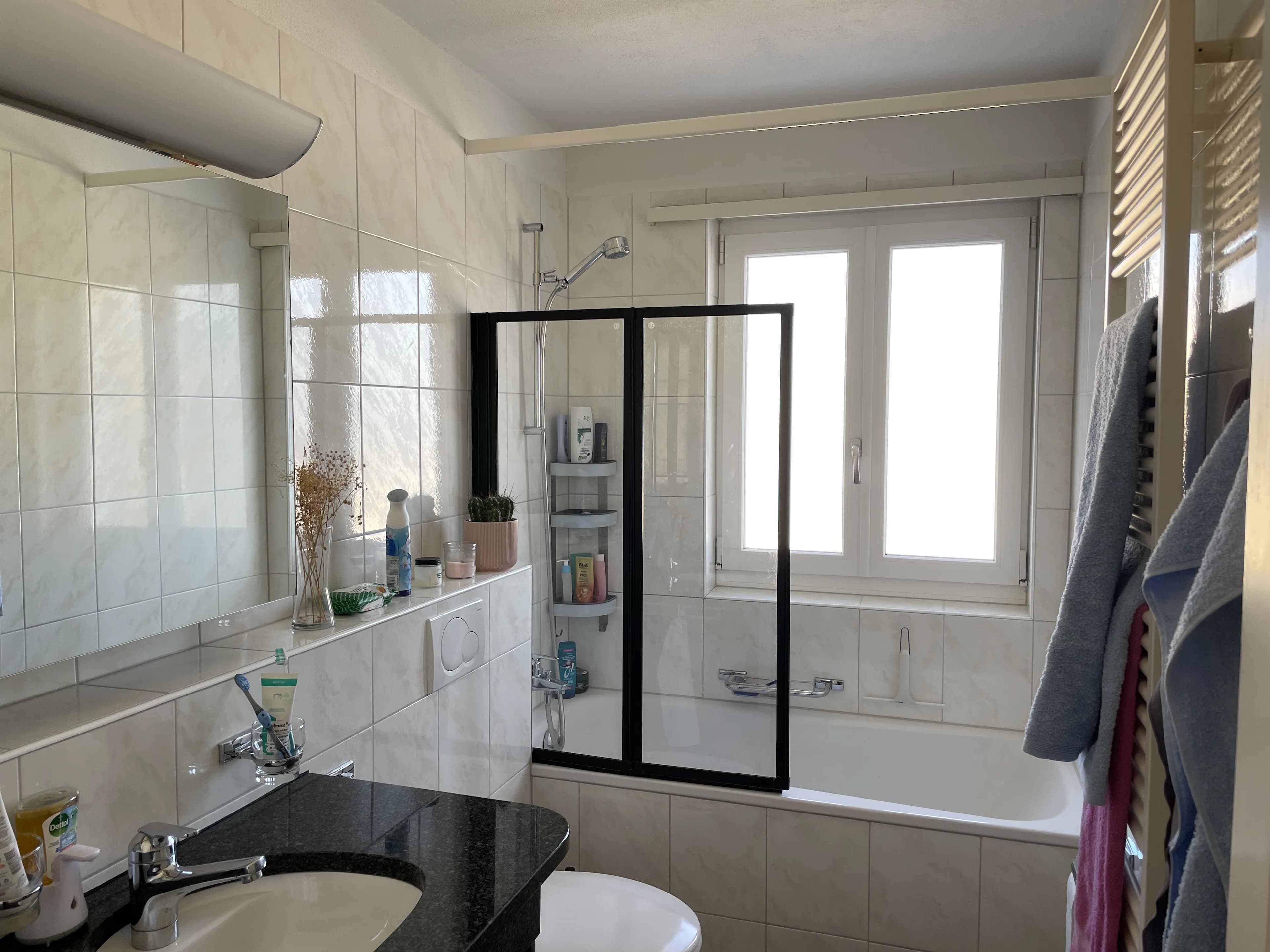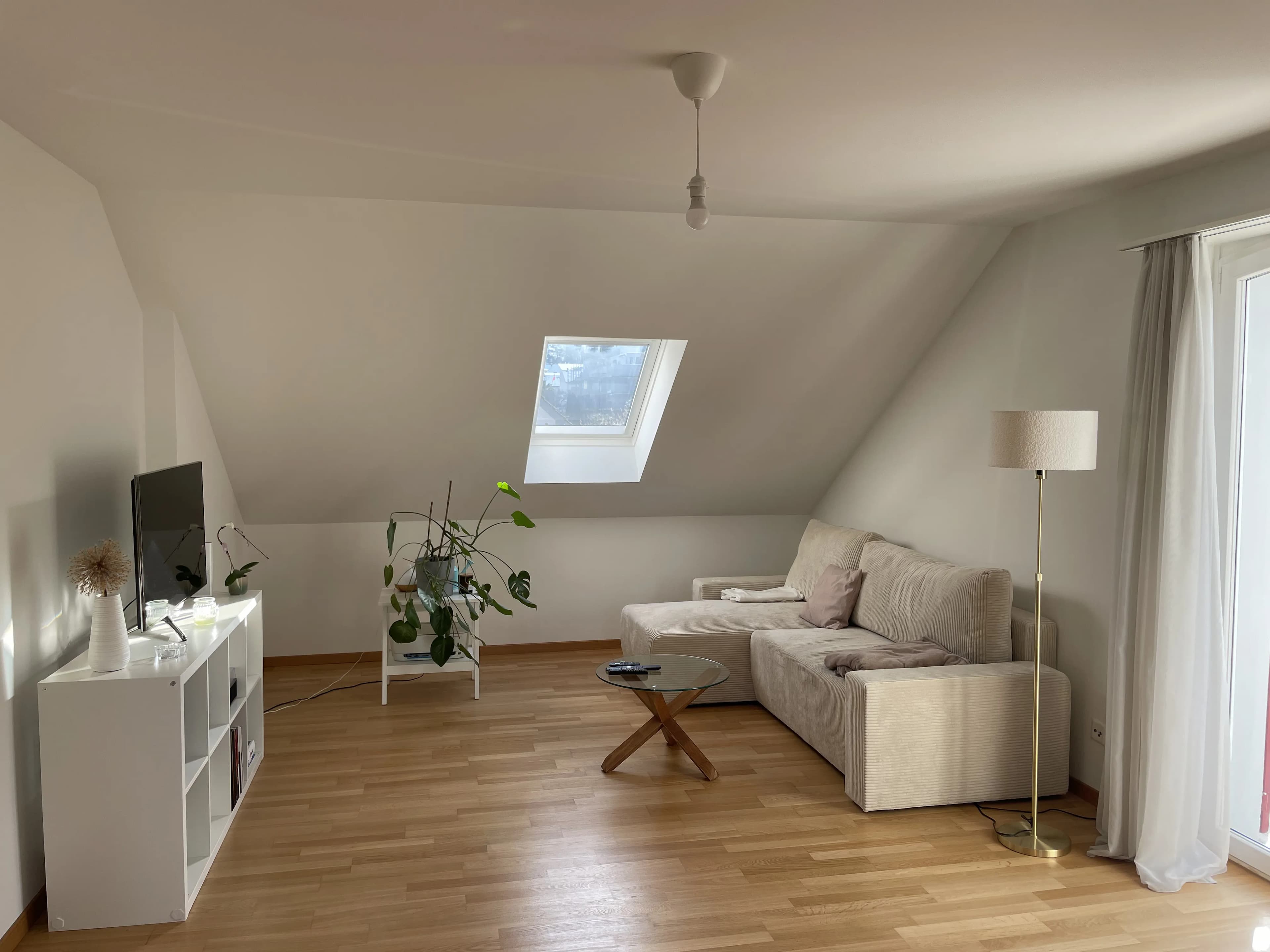 Die helle und moderne Dachwohnung ist 88 m² gross und verfügt über einen wunderschönen Balkon, der zum Verweilen einlädt. Dein Zimmer ist 15 m² gross und vollständig möbliert. Küche, Bad und Wohnzimmer teilst du dir mit meiner sehr liebevollen und herzlichen Mitbewohnerin. Waschmaschinen und Trockner stehen ebenfalls fürs ganze Haus zur Verfügung.
