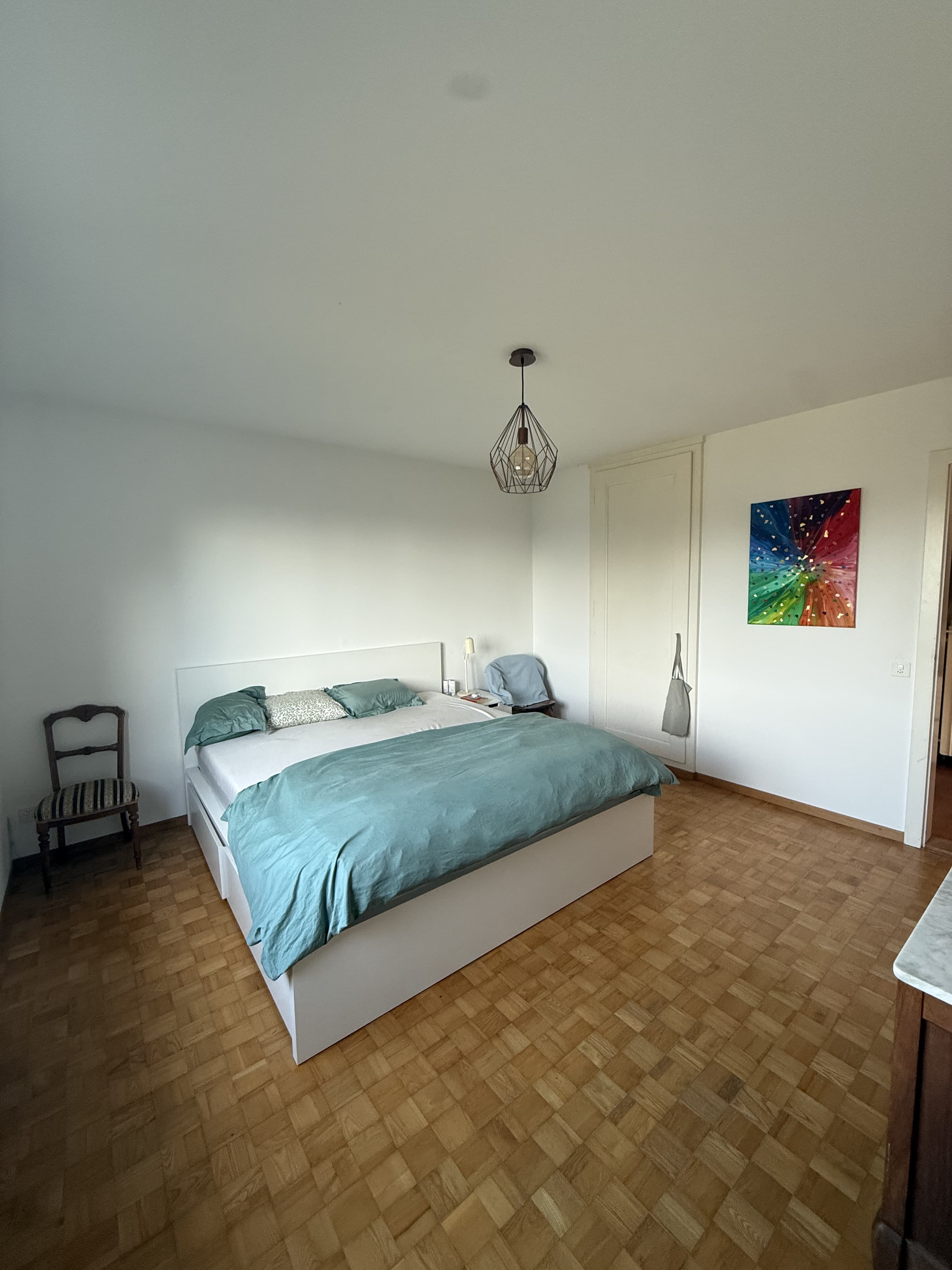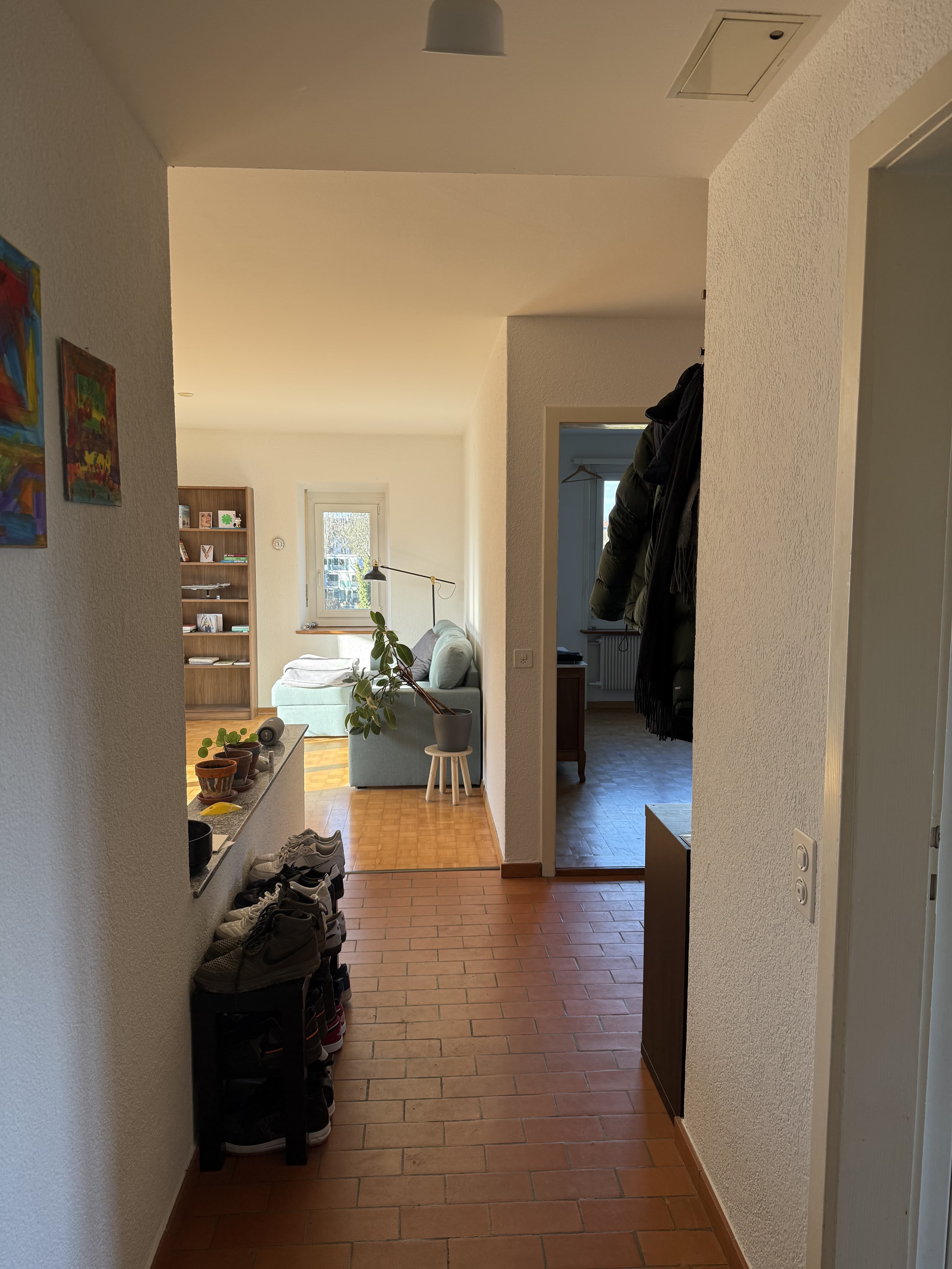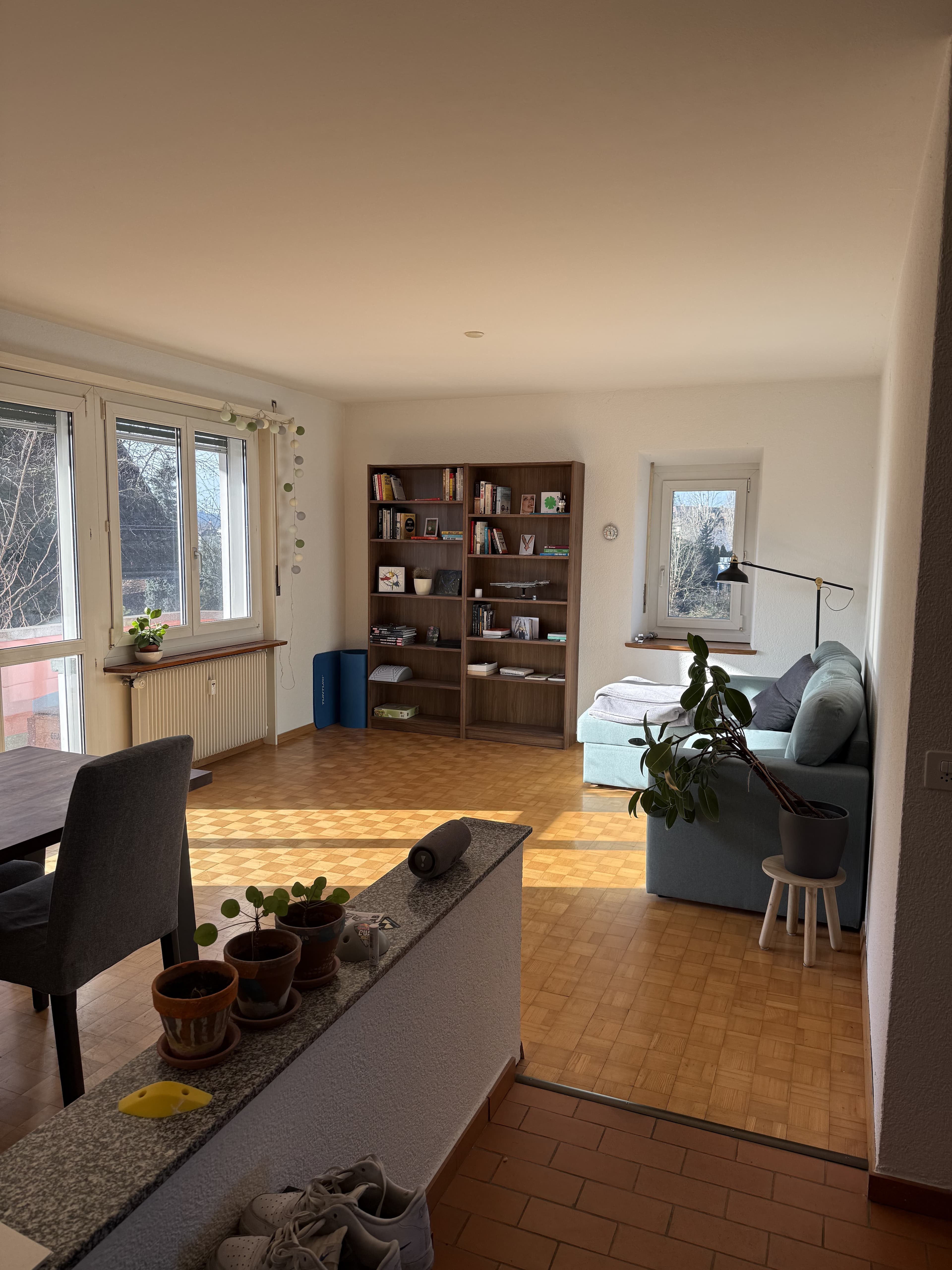 Das Zimmer ist Teil einer 3 1/2-Zimmerwohnung mit einem grossen, sehr hellen Wohnzimmer, das durch die nach Südwesten ausgerichteten Fenster viel Tageslicht erhält. Der grosszügige Balkon ist ein echtes Highlight und kann das ganze Jahr über genutzt werden.