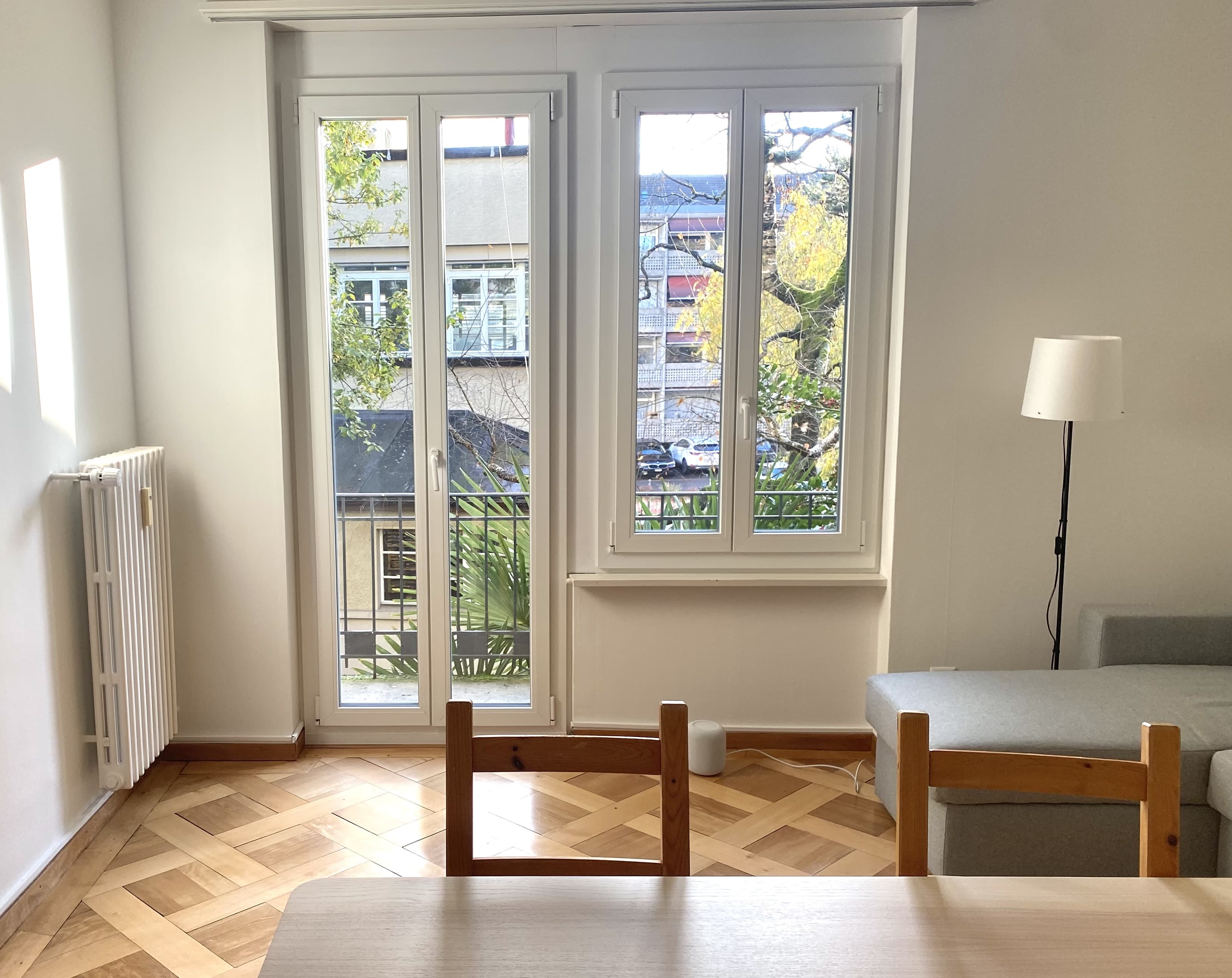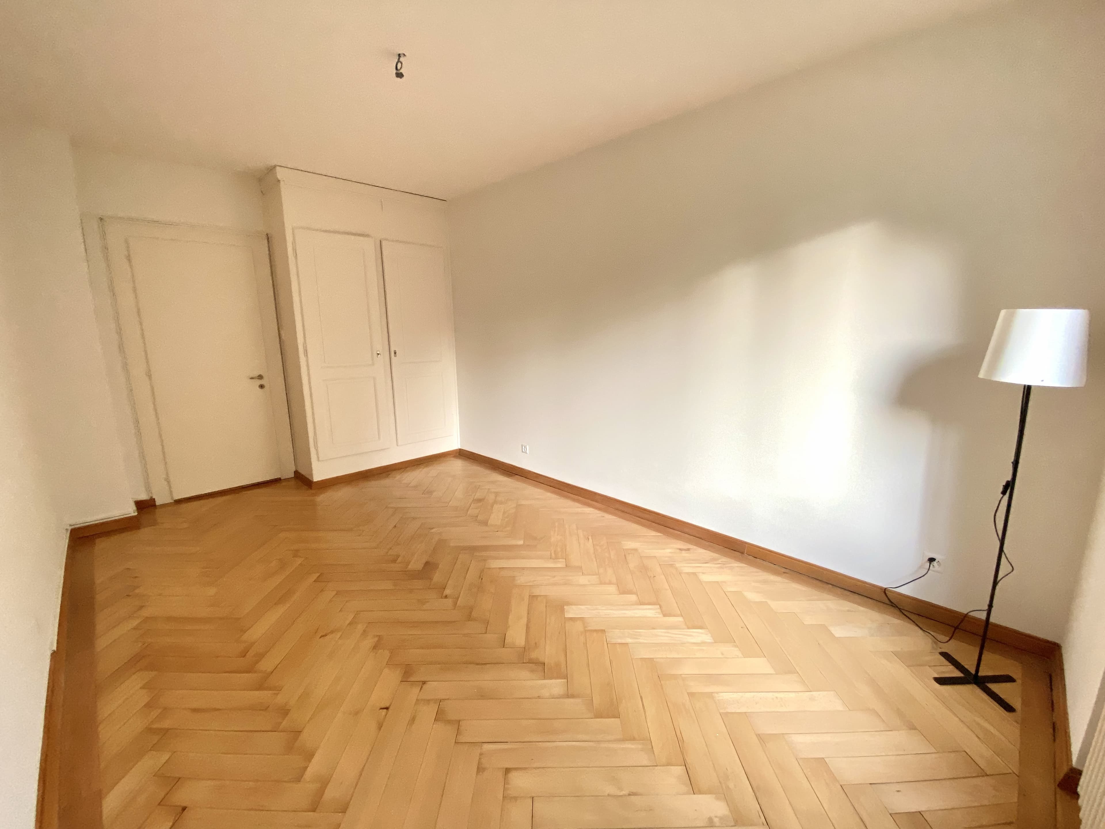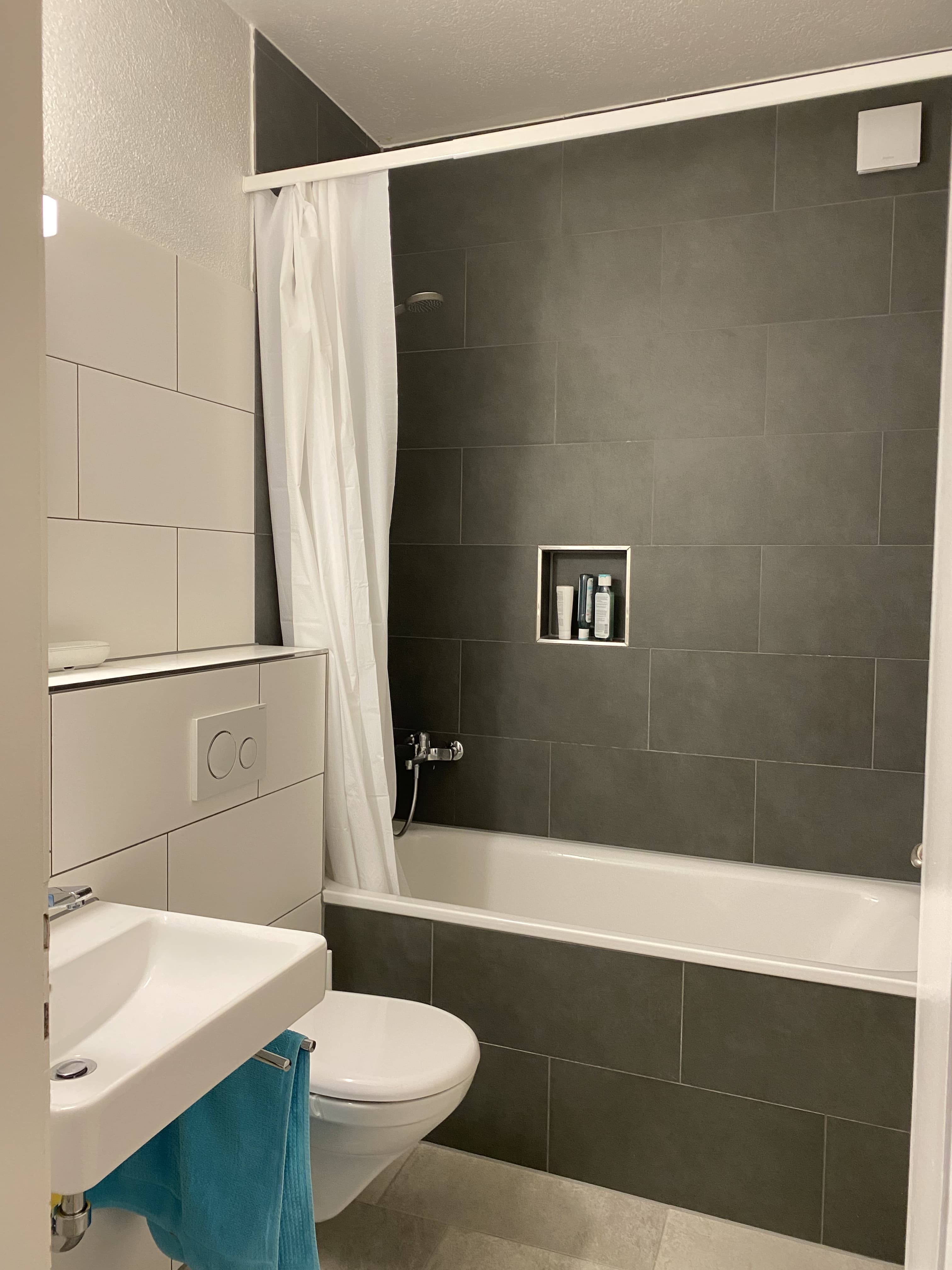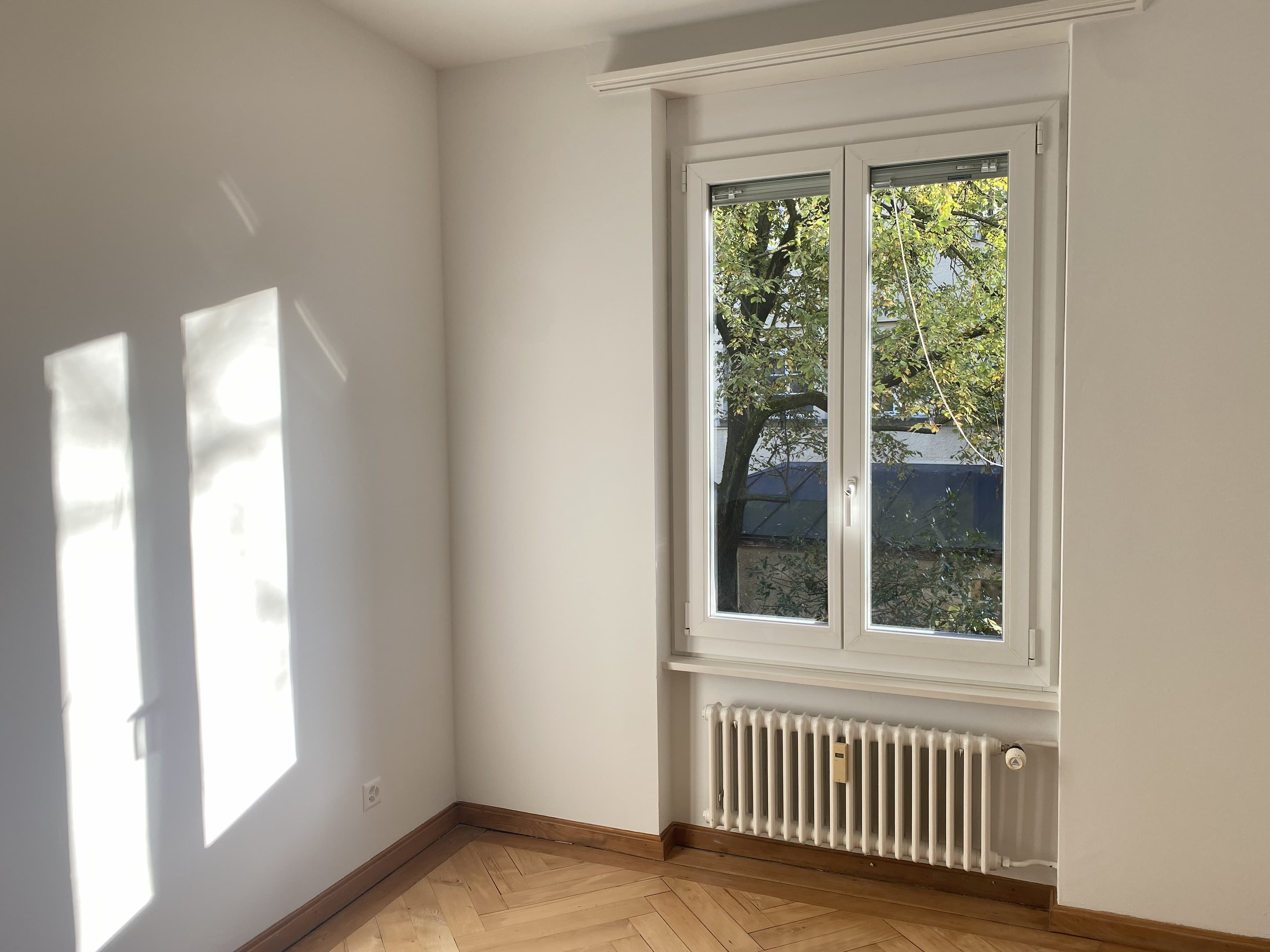 Das freie Zimmer ist mit 15m^2 das grösste der beiden Schlafzimmer und geht in den ruhigen Hinterhof. Es hat bereits einen Einbauschrank mit reichlich Stauraum. Nebendran liegt das schöne Wohnzimmer mit Balkon ins Grüne. Das Bad ist frisch renoviert und sehr modern.