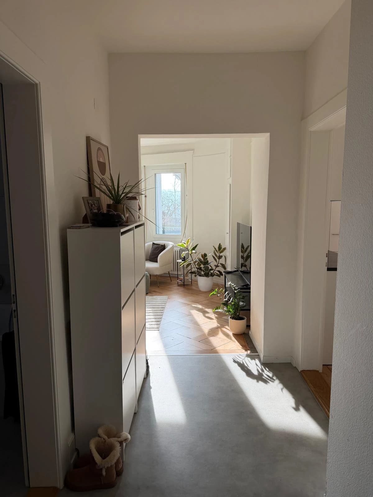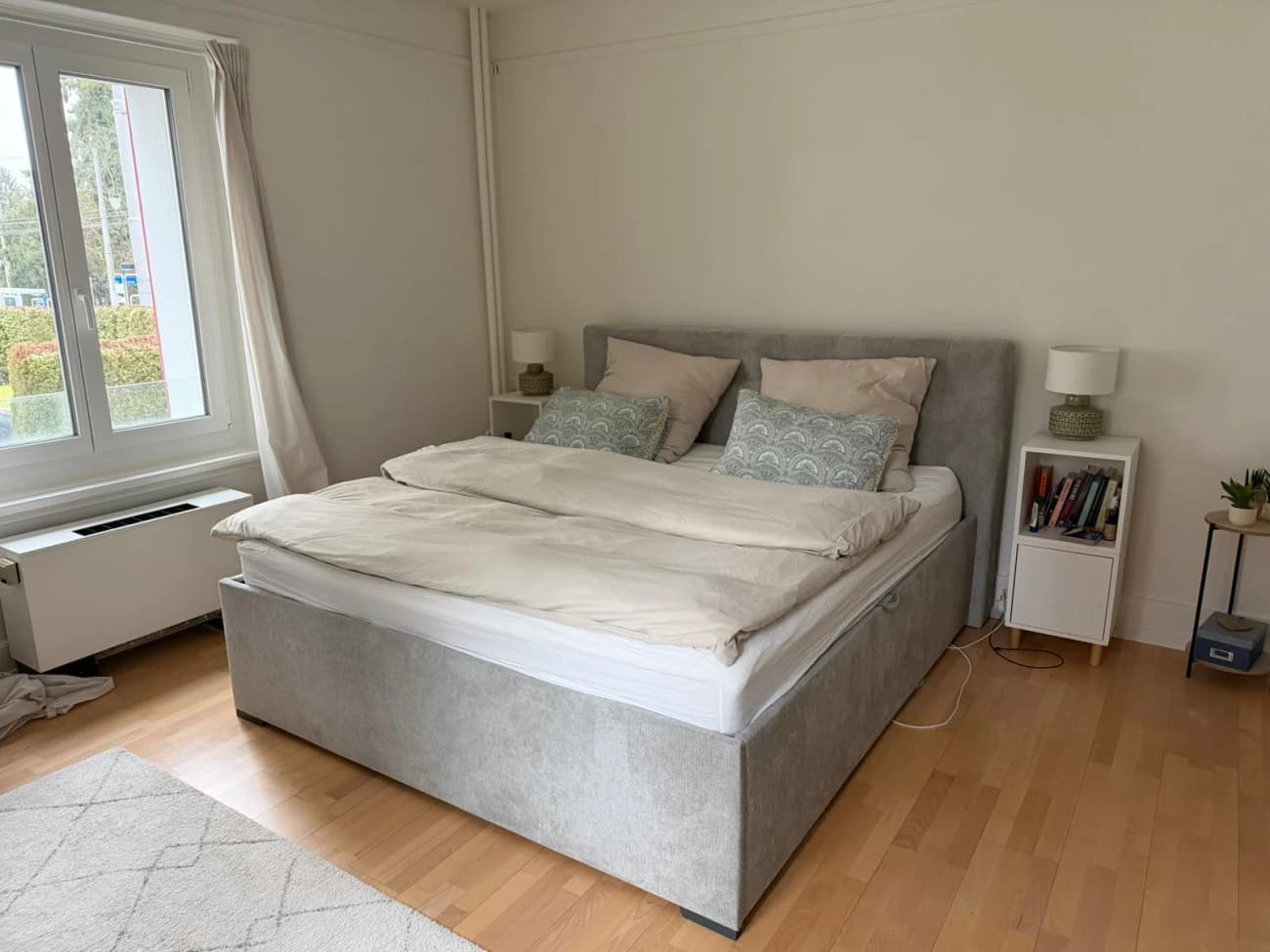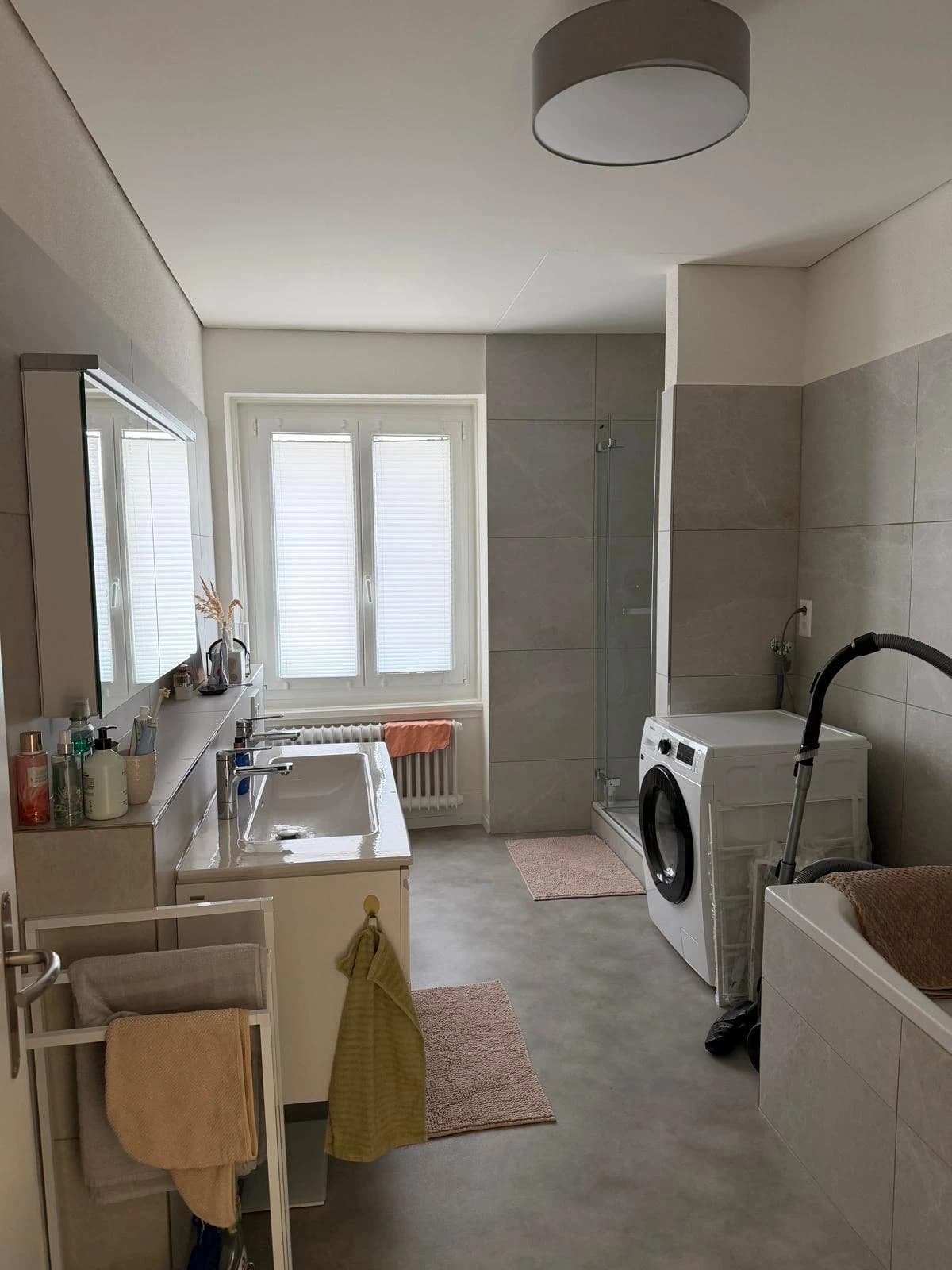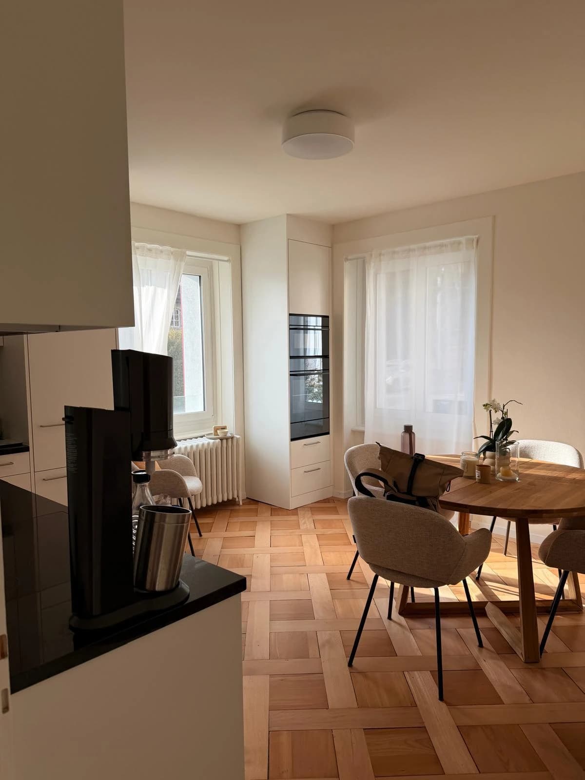 Zur Wohnung: Die Wohnung wurde 2024 komplett saniert und ist sehr hochwertig ausgestattet. Wir haben eine voll eingerichtete Küche mit allem, was man braucht, eine Waschmaschine und insgesamt viel Stauraum. Besonders angenehm sind das grosse Badezimmer sowie ein zusätzliches Gäste-WC, super praktisch im Alltag. Mein Zimmer kann auf Wunsch möbliert übernommen werden mit einem grossen Bett und Schrank. Ein Parkplatz ist ebenfalls vorhanden. Einkaufsmöglichkeiten sind in ca. 5 Minuten zu Fuss erreichbar, und Tram sowie Bus halten direkt vor der Tür. Der Mietpreis beinhaltet die Nebenkosten sowie Internet.