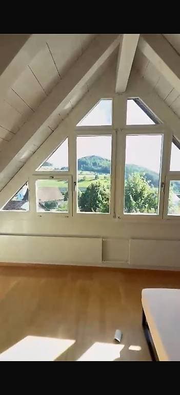 Schönstes Zimmer des Hauses mit weitgehende Ausblick über ganz Maisprach und direktem Sonnenlichteinfall mit Dachschräge ganz oben.