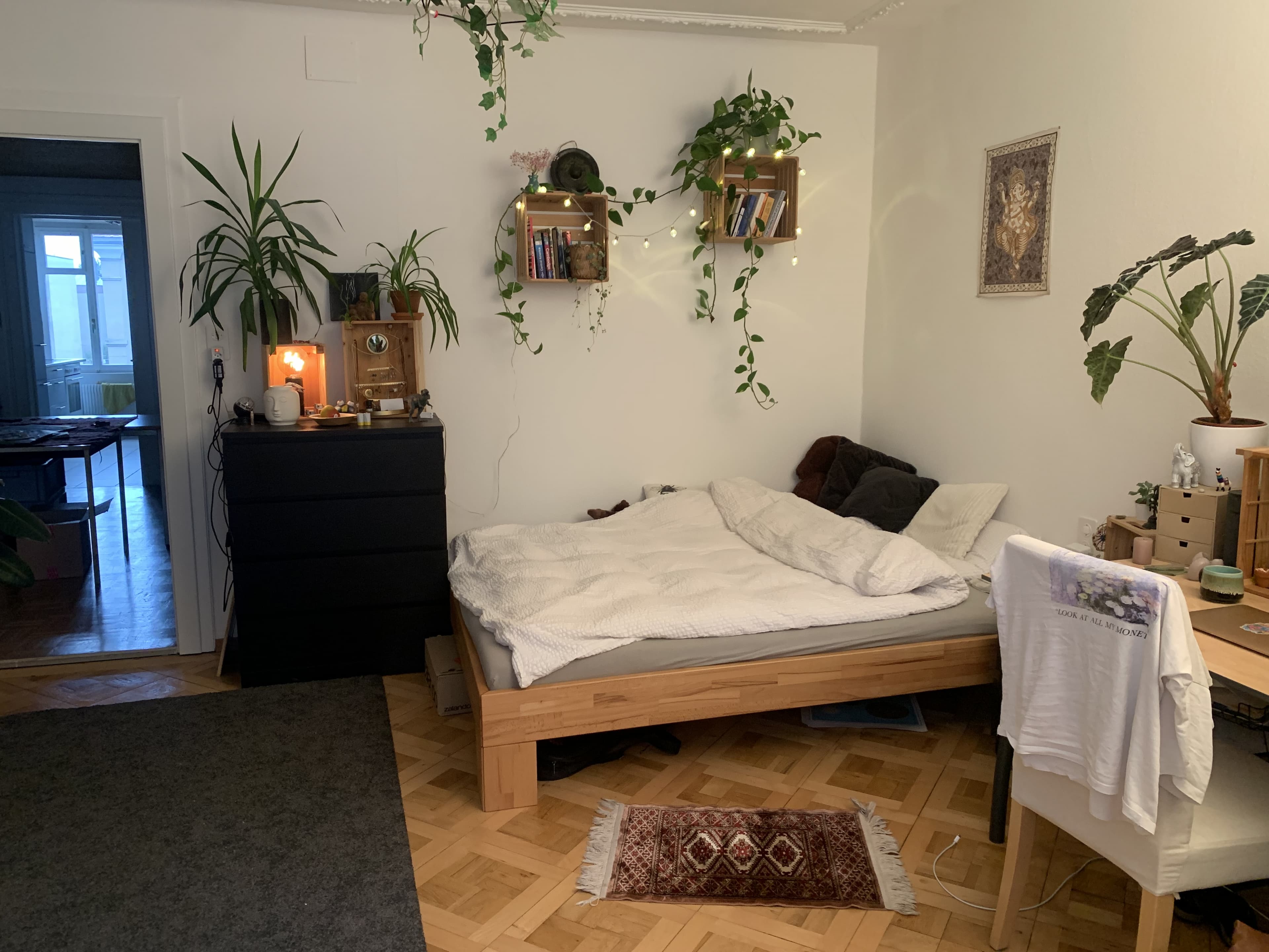 Chambre spacieuse dans une coloc sympathique (2 autres personnes). Il y a une armoire encastrée, 2 commodes, un lit et un bureau. Je peux également laisser le piano et autres, selon discussion.