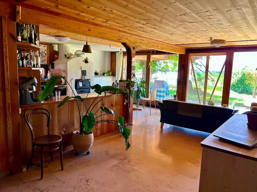 Die Wohnung befindet auf dem Hof Faver im Erdgeschoss und hat direkten Gartenzugang mit Sitzplatz. Im Haus gibt es sich eine weitere WG, eine Familie mit zwei kleinen Kindern und weitere Personen verschiedenen Alters. Wegen den Hofkatzen, ist es nicht ideal, wenn du Haustiere mitbringst.
